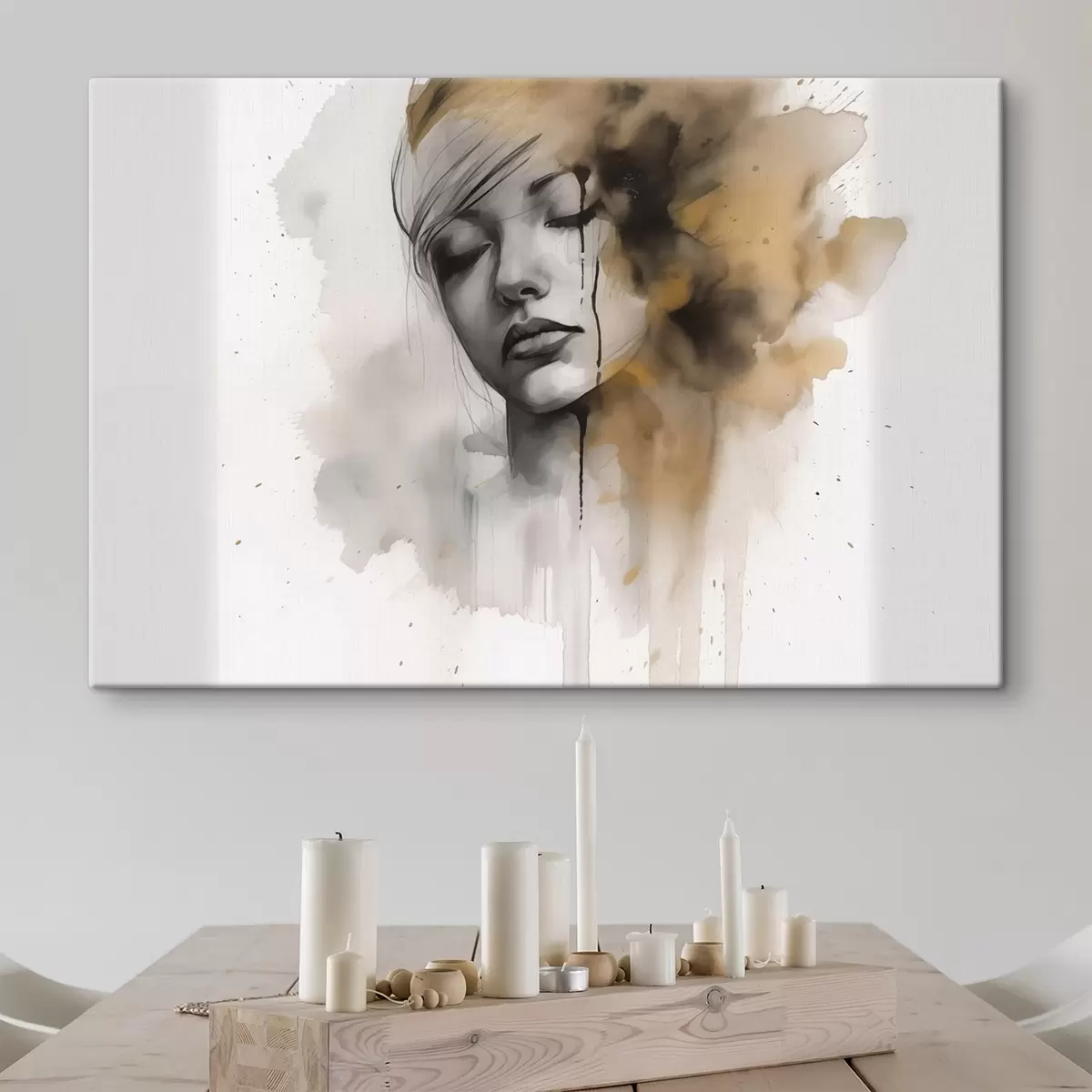 Tableau Portrait d'une jeune fille à l'aquarelle avec des ombres abstraites Nr s42474