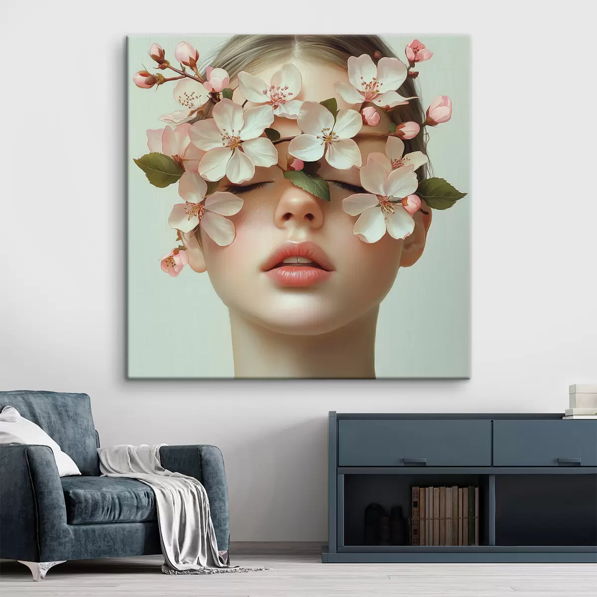 Tableau Portrait d'une jeune fille avec des fleurs sur le visage s42506