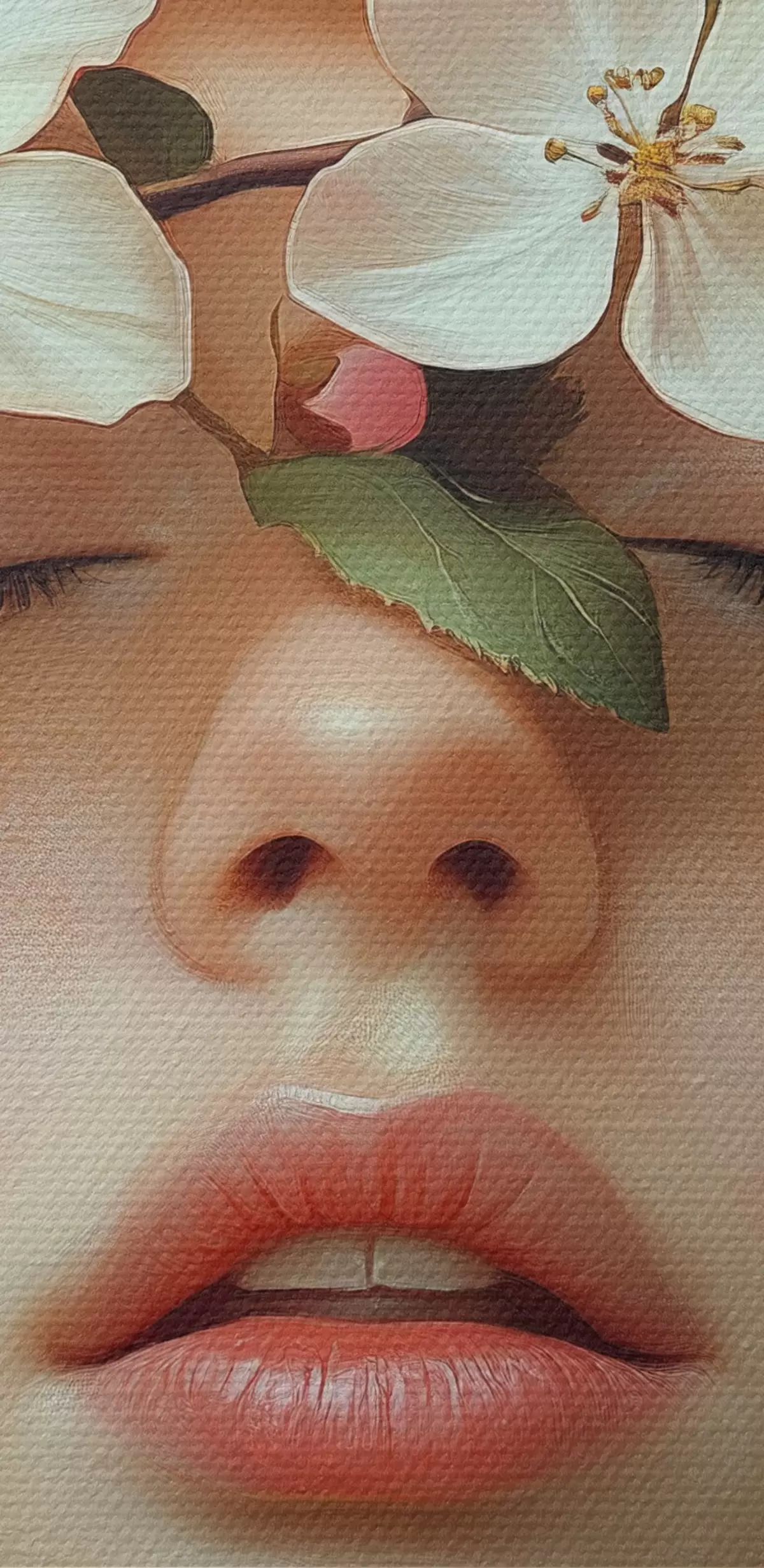 Tableau Portrait d'une jeune fille avec des fleurs sur le visage Nr s42506