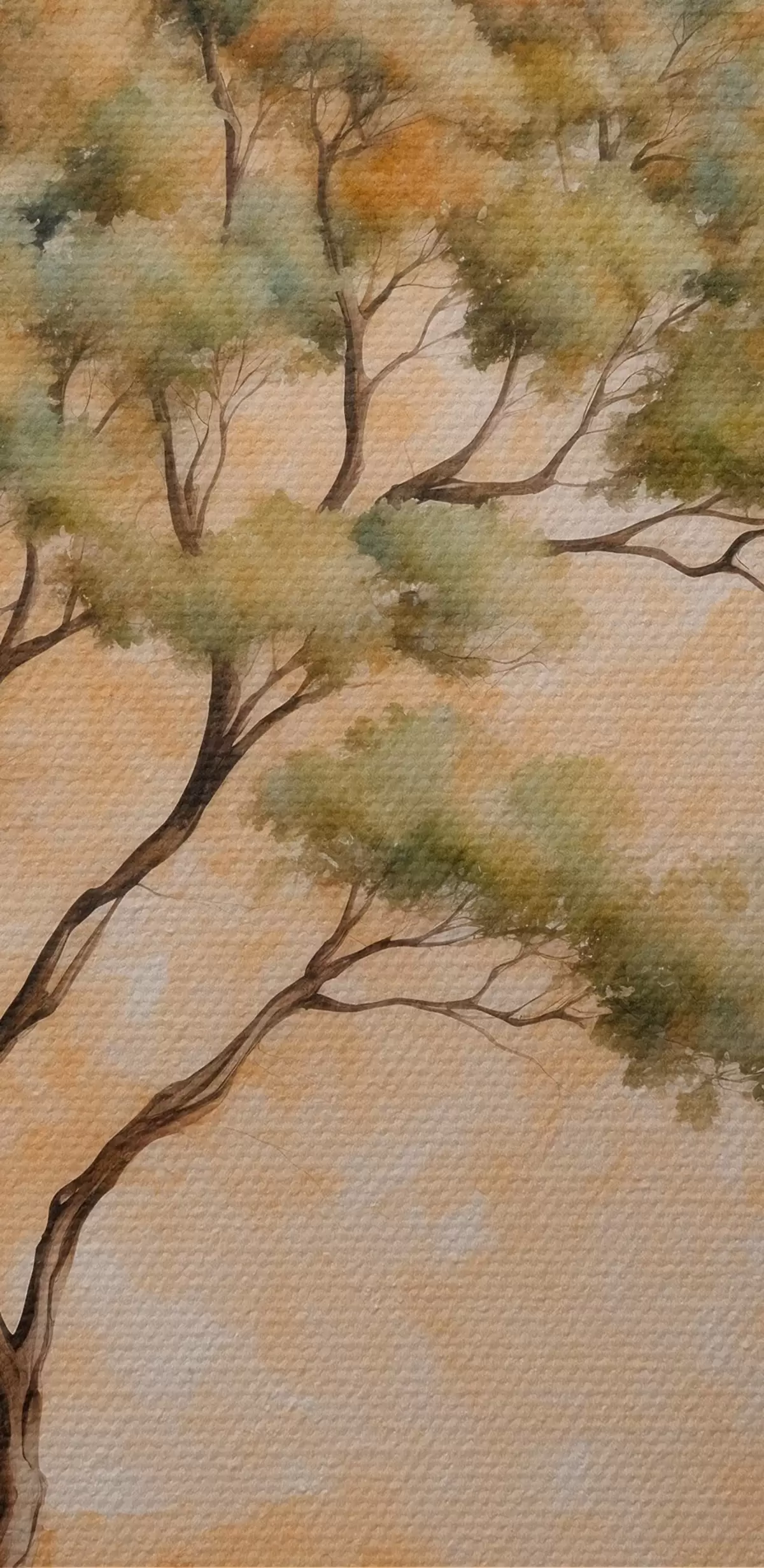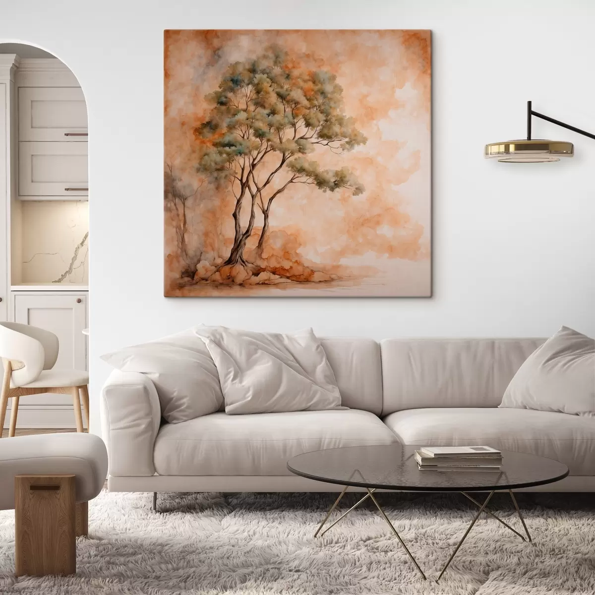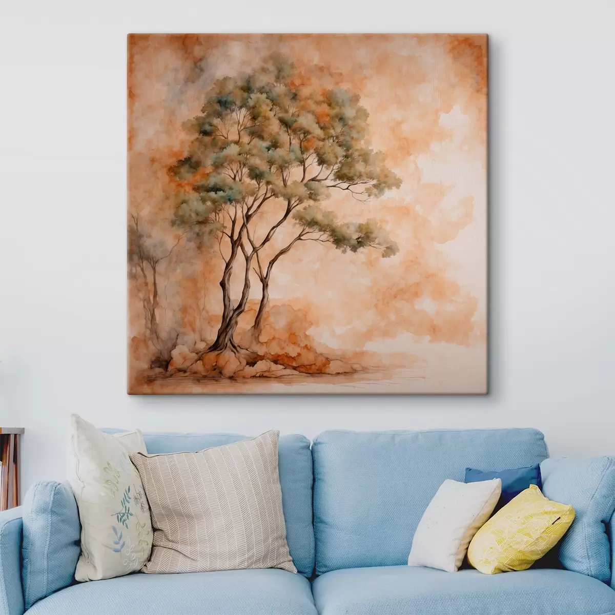 Tableau Arbre sur fond orange et blanc dans le style aquarelle s42514