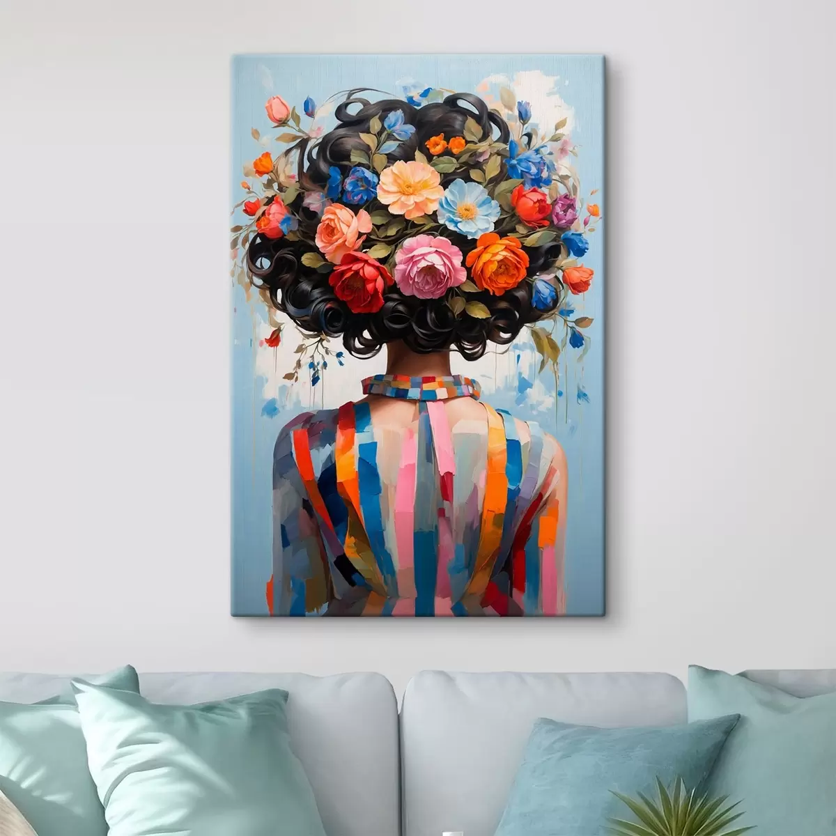 Tableau Fille en robe colorée et fleurs Nr s42524
