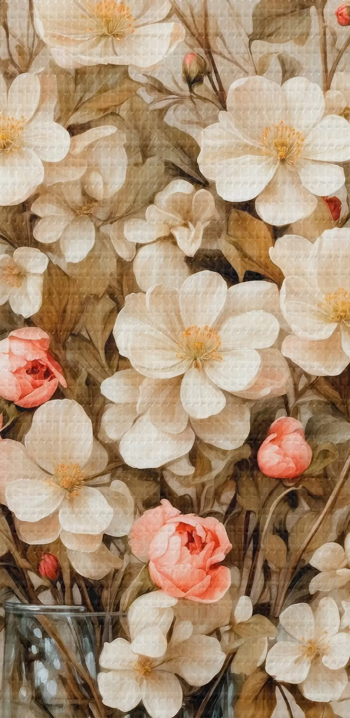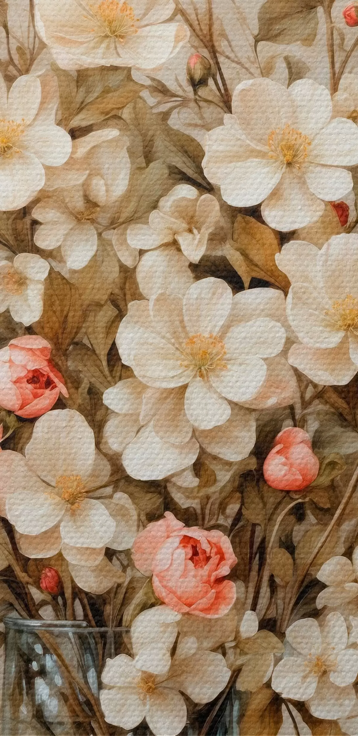 Tableau Fleurs dans un vase transparent sur fond beige s42534