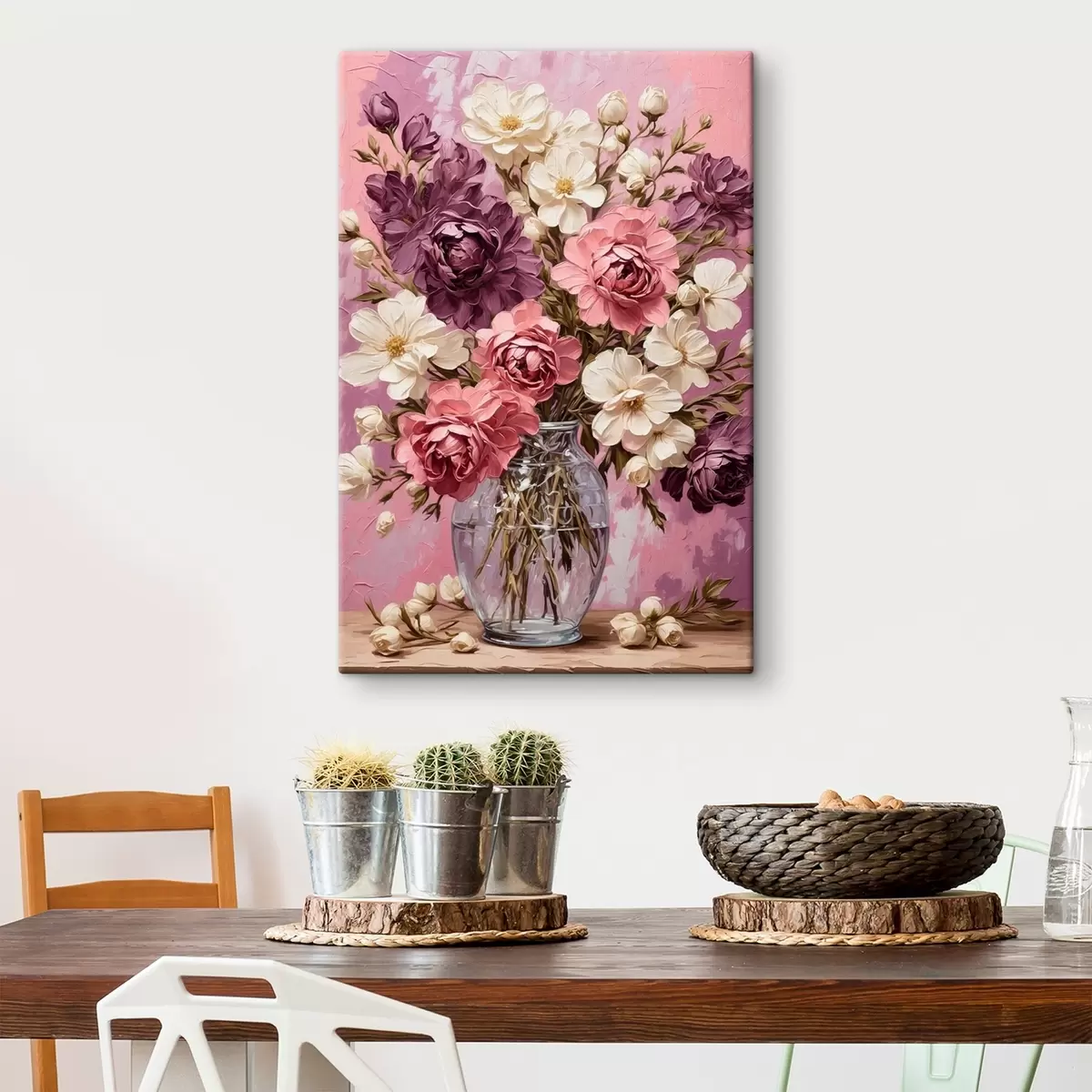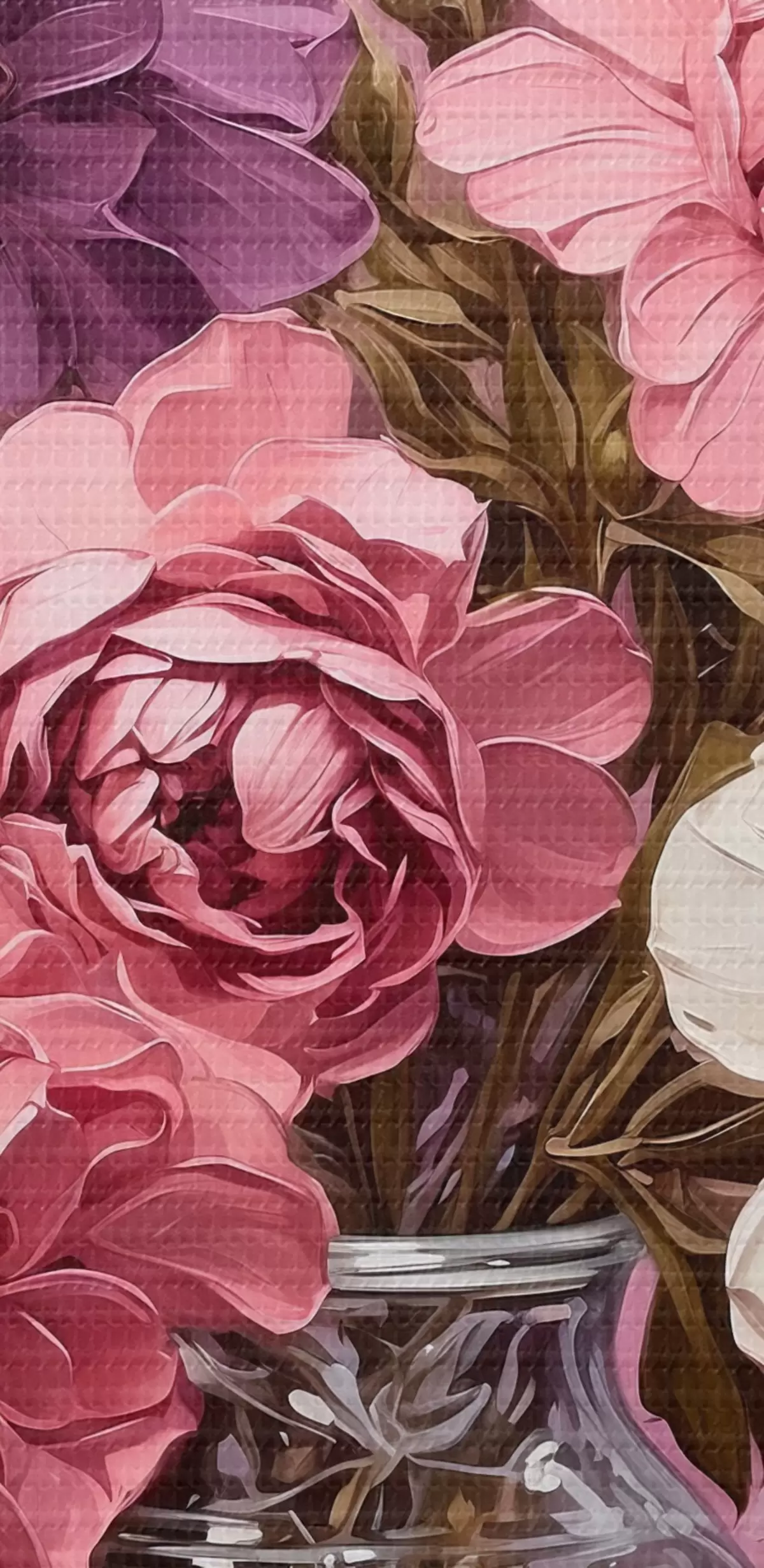 Tableau Fleurs dans un vase transparent sur fond violet Nr s42535