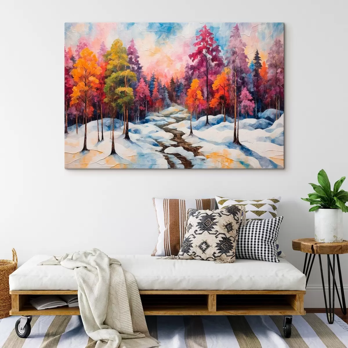 Tableau Forêt en hiver, peinture à l'aquarelle s42549