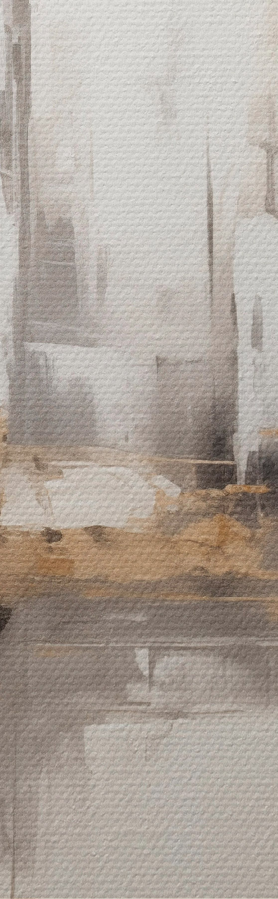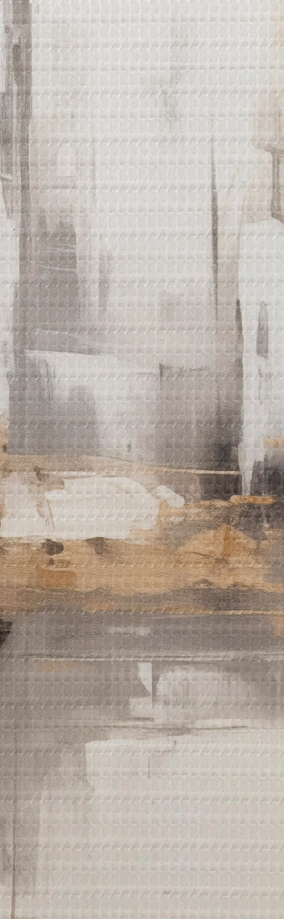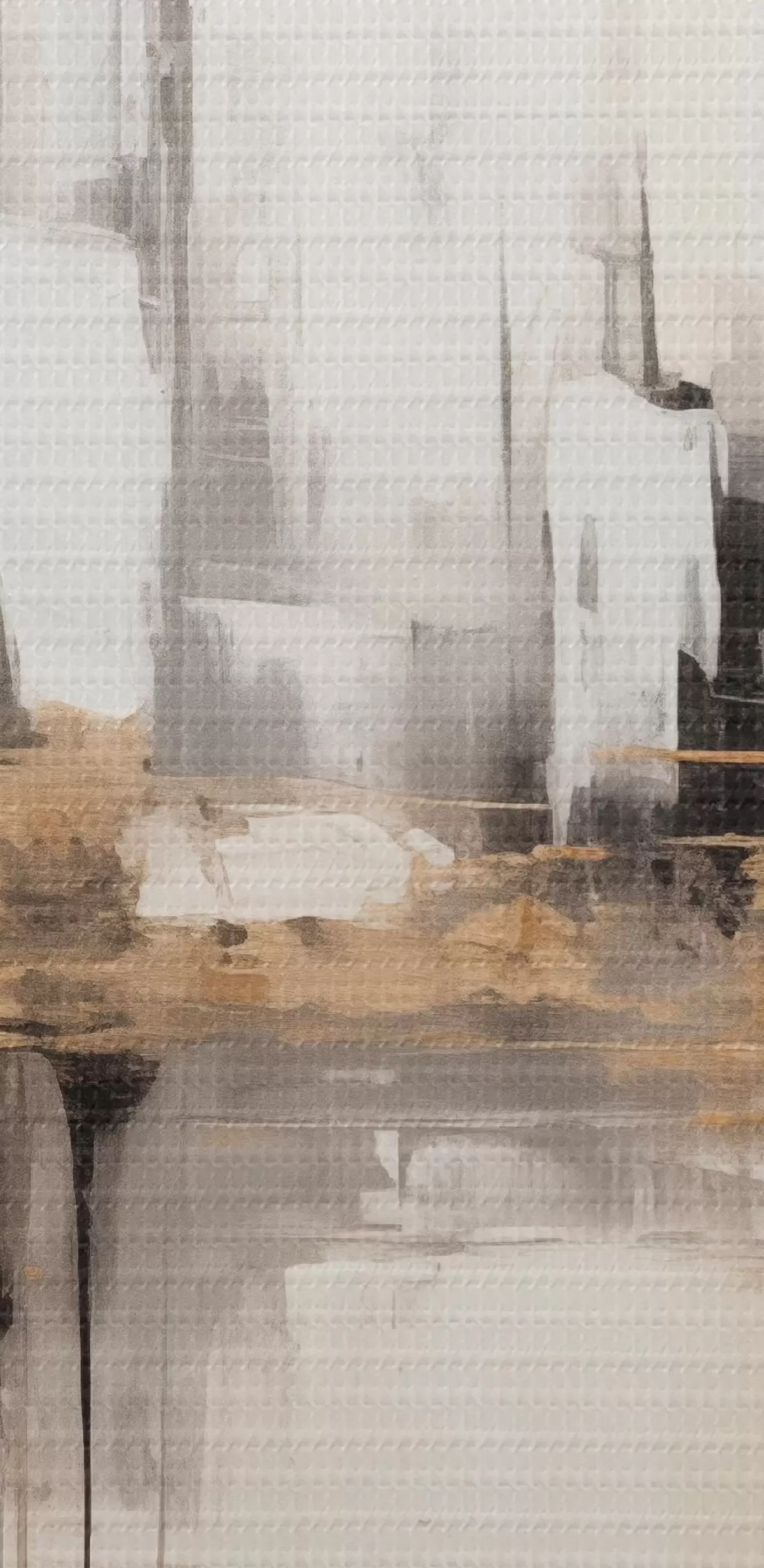 Tableau Un paysage urbain abstrait avec des reflets de bâtiments dans l'eau, créé dans des tons neutres avec des accents de tons chauds. Nr s42628