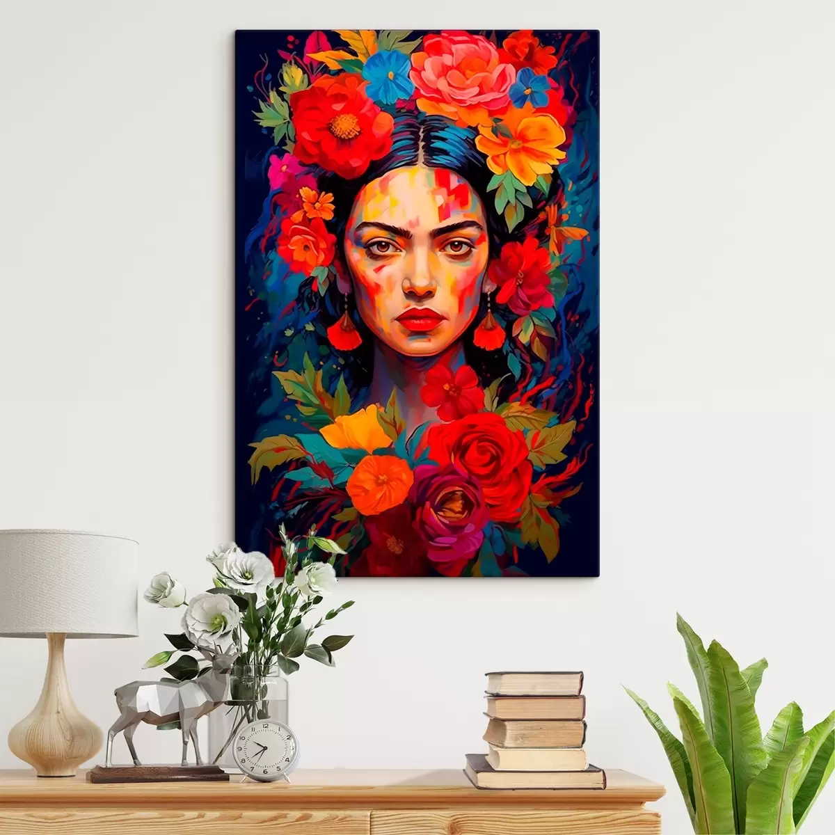 Tableau Portrait de femme avec cadre floral dans un style abstrait lumineux s42653