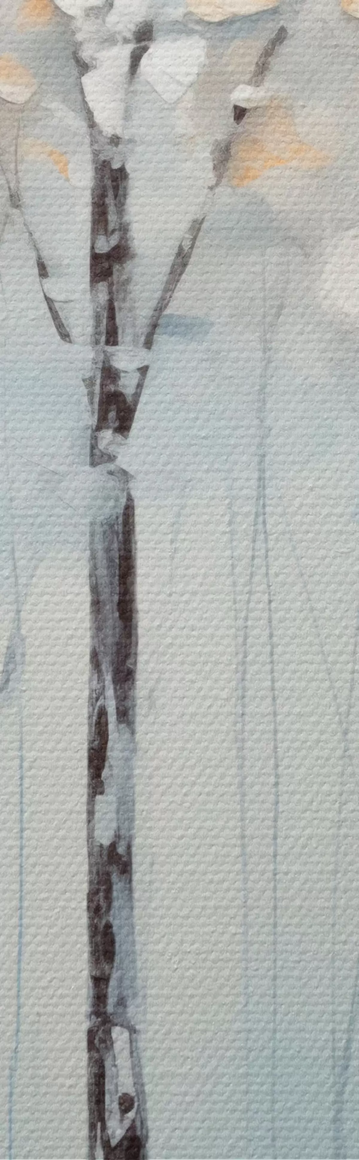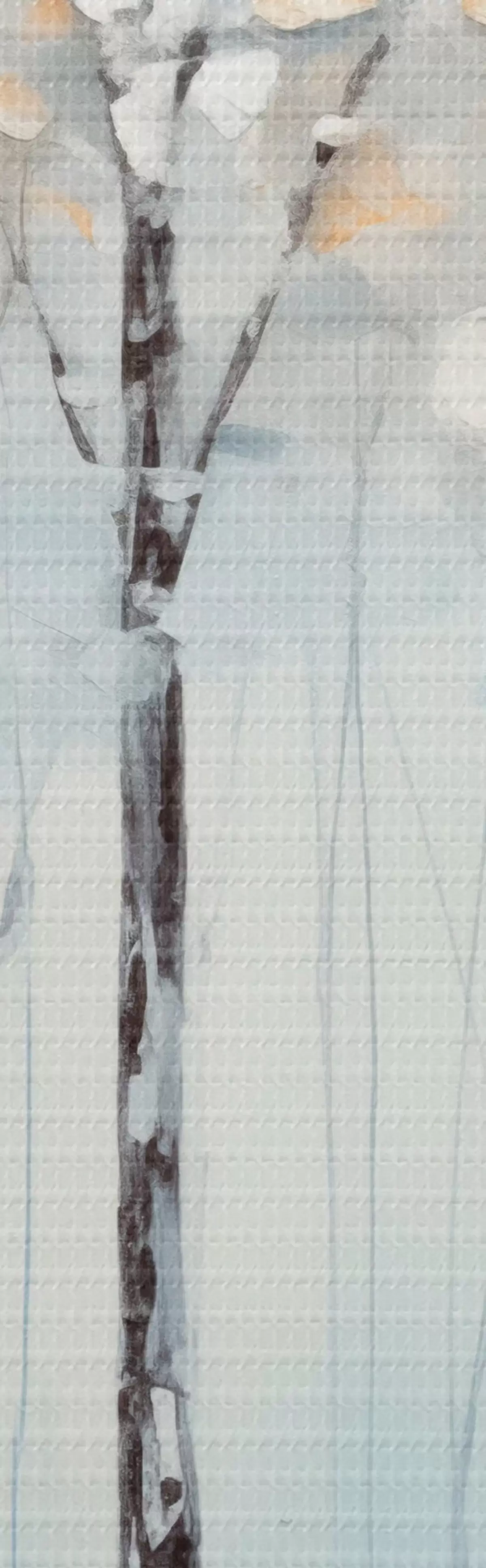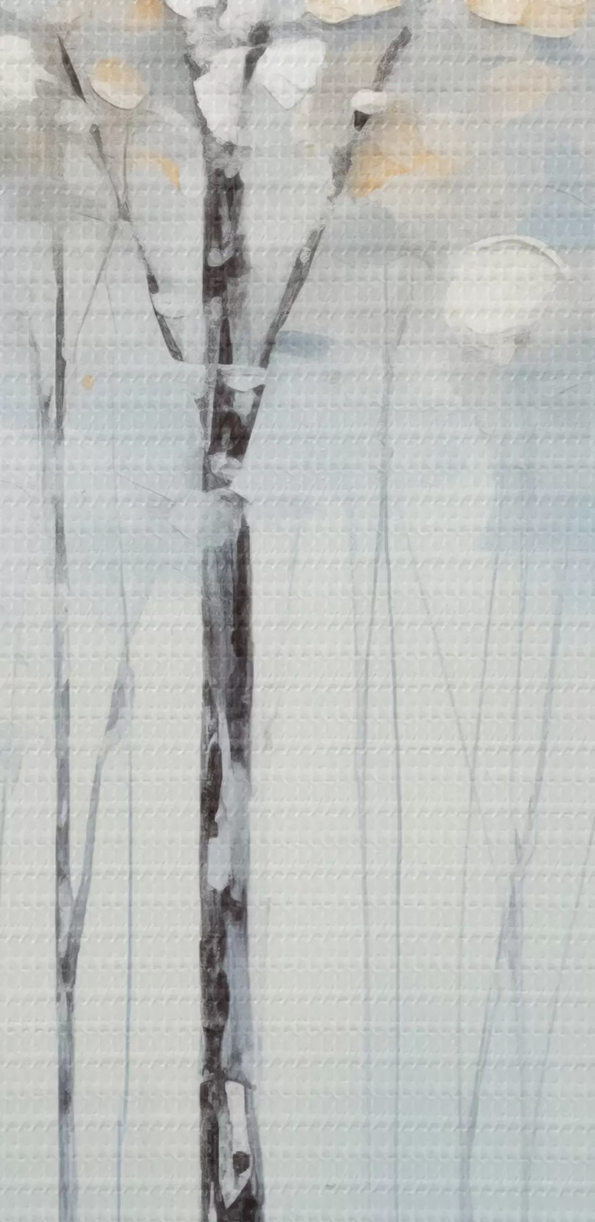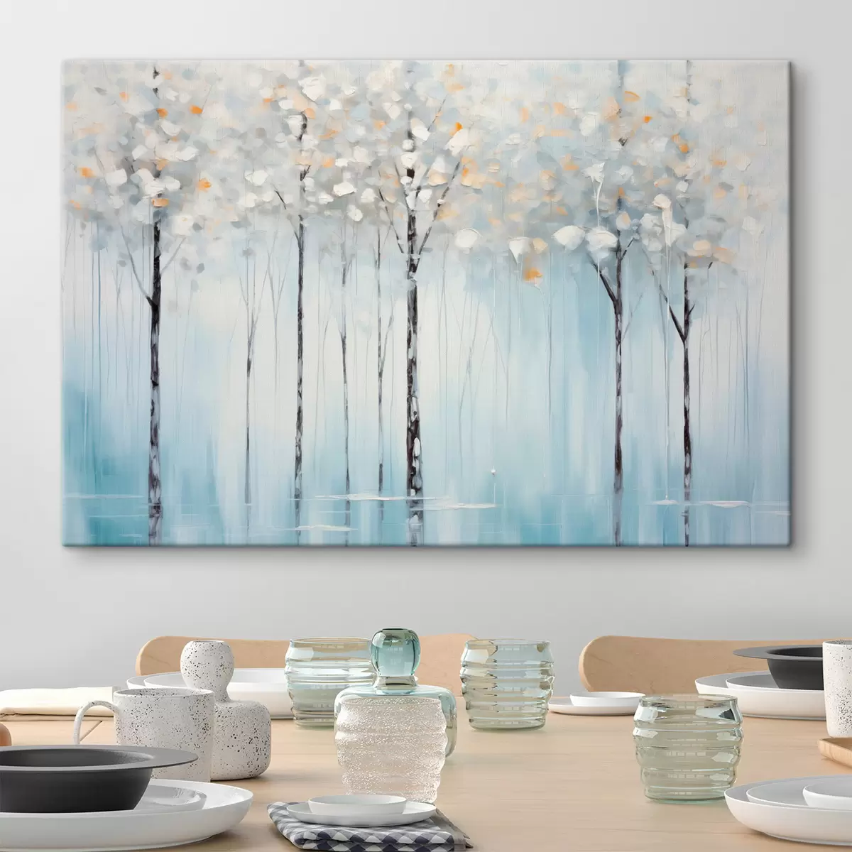 Tableau Grands arbres élancés avec des feuilles bleues et des touches de jaune sur un fond bleu tendre, imitation peinture à l'huile Nr s42731
