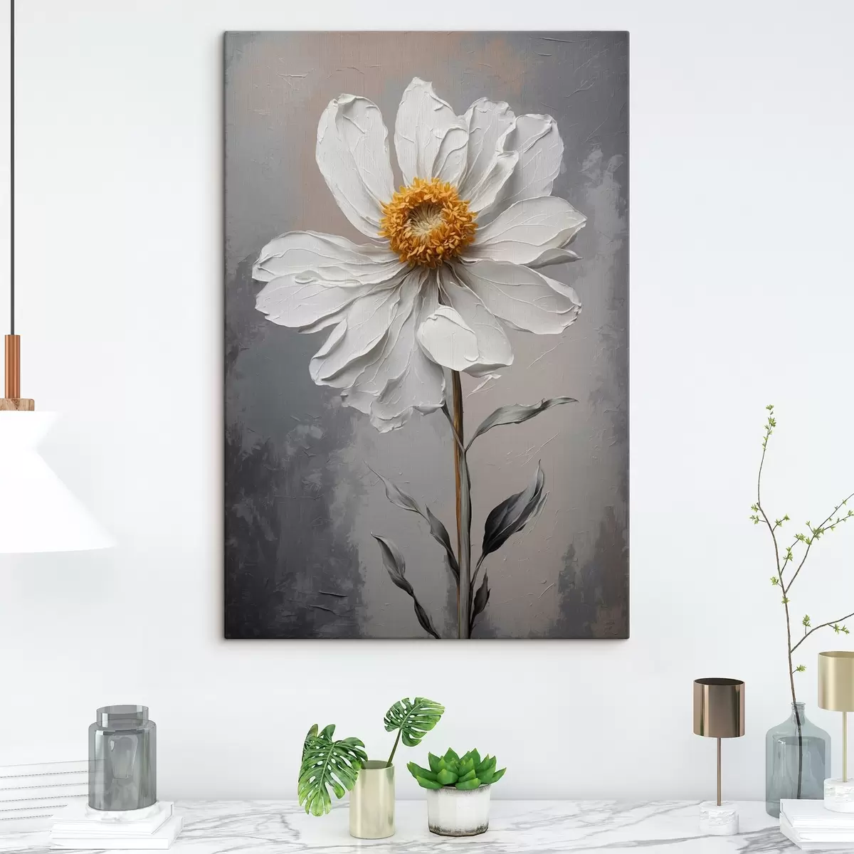 Tableau Camomille sur fond blanc en style peinture à l'huile Nr s42758
