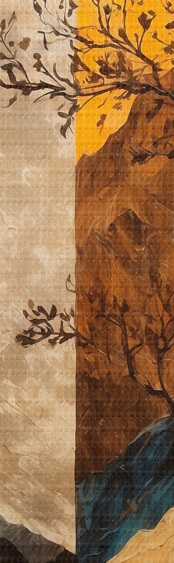 Tableau Montagnes multicolores sur fond de lune en peinture acrylique s42770