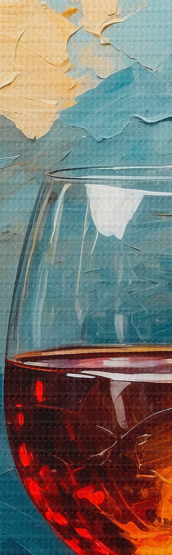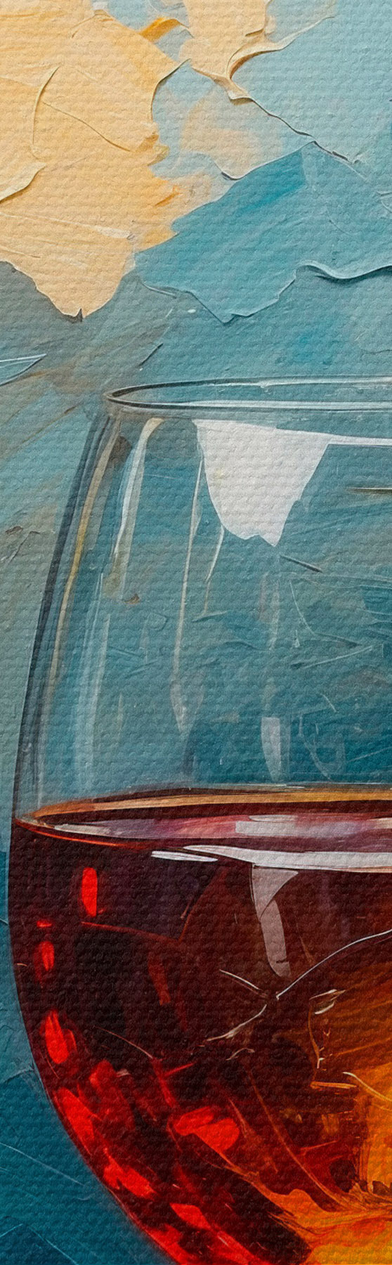 Tableau Raisins, verre et bouteille de vin sur fond acrylique abstrait s42772