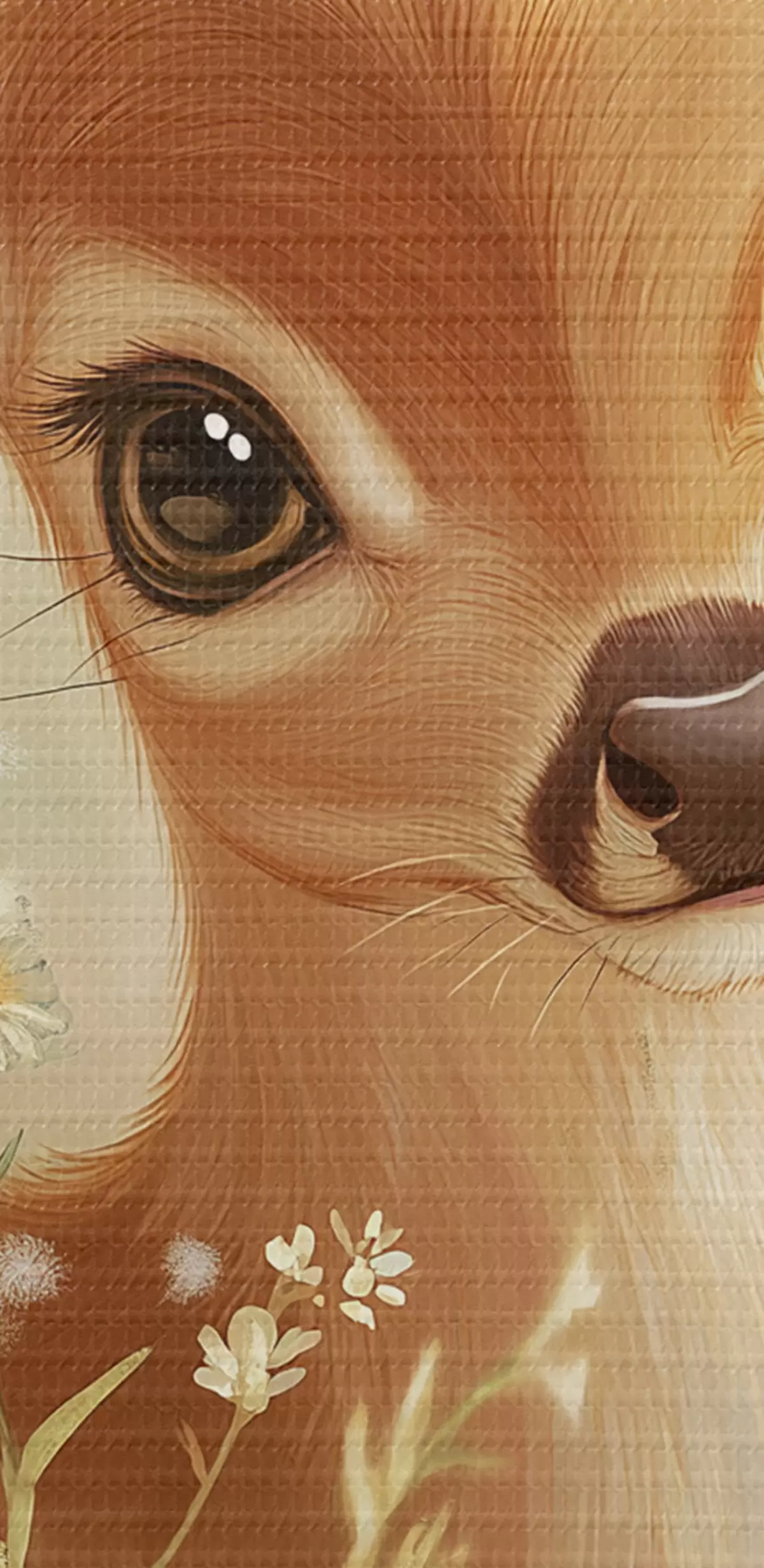 Tableau Mignon cerf dans la prairie avec des fleurs de marguerite, dessin à l'huile Nr s42780