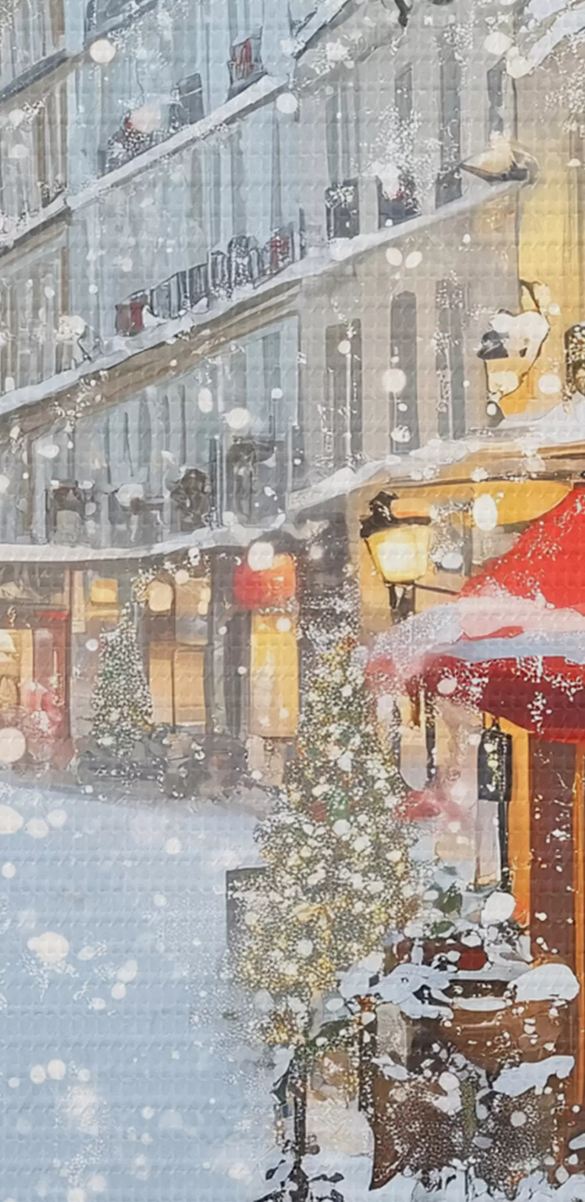 Tableau Café d'hiver confortable, tasses de café, style acrylique, architecture de la vieille ville  s42795