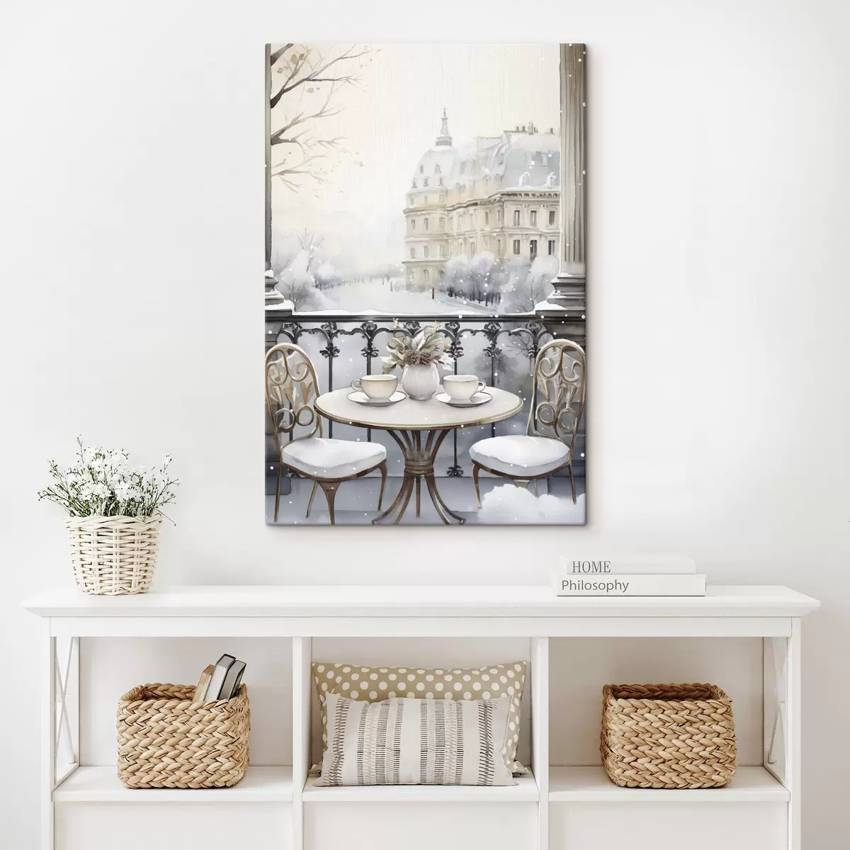 Tableau Beau café, tasses de thé, style bohème, aquarelle, esthétique hivernale  s42796