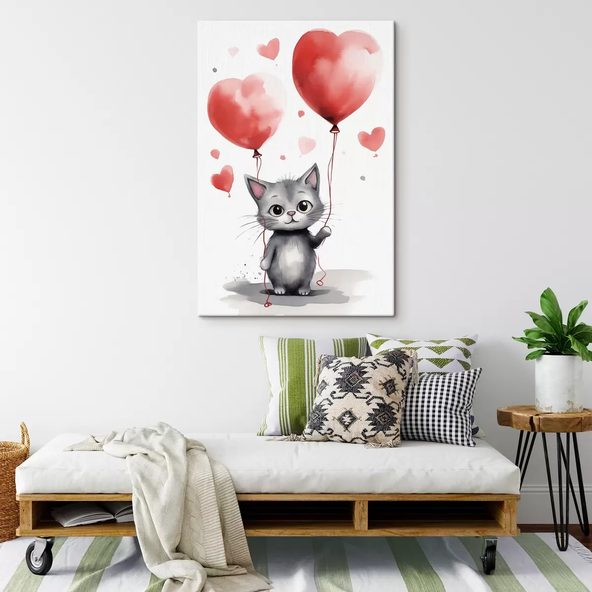 Tableau Chaton mignon avec des ballons en forme de coeur Nr s42871