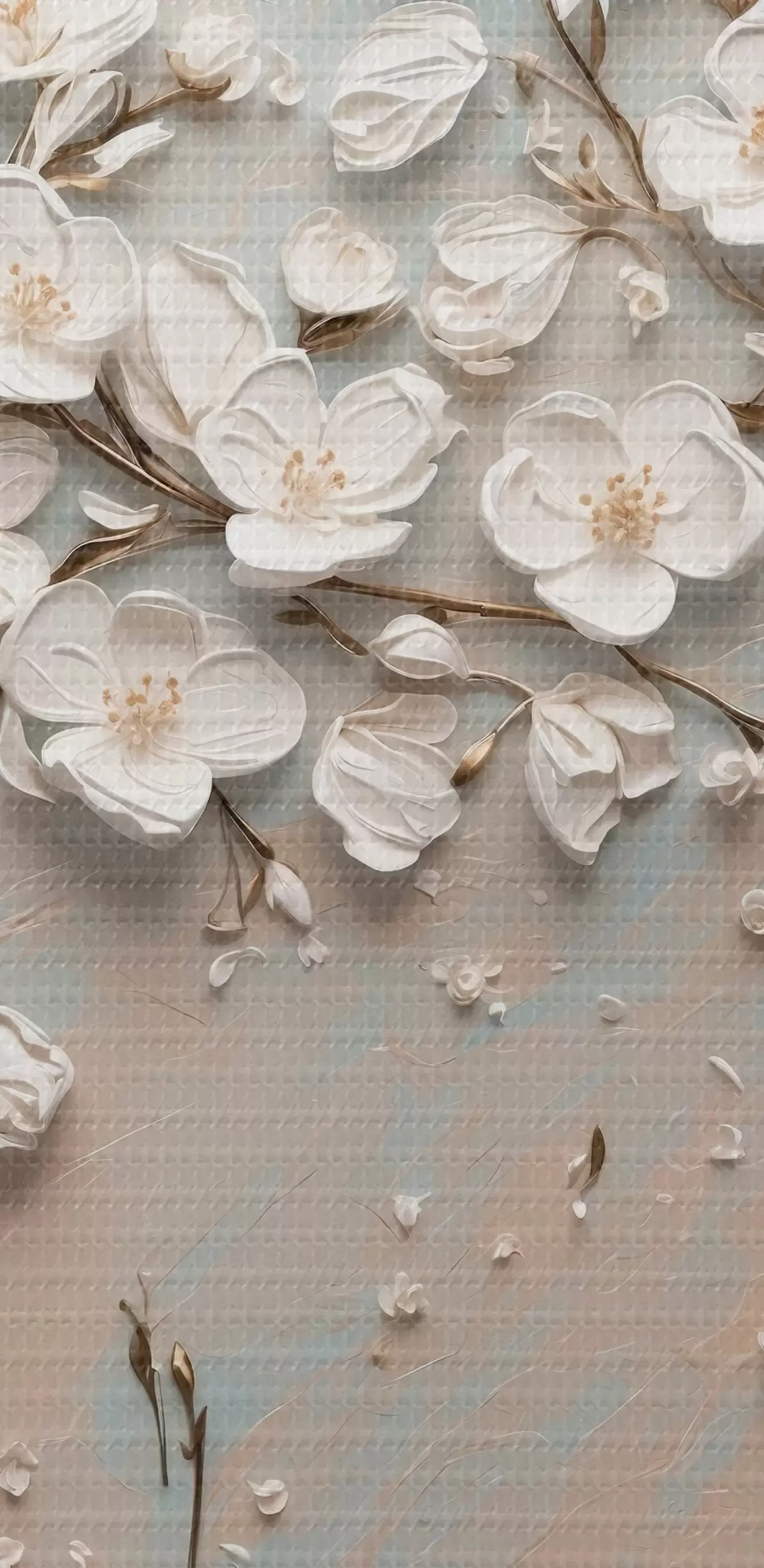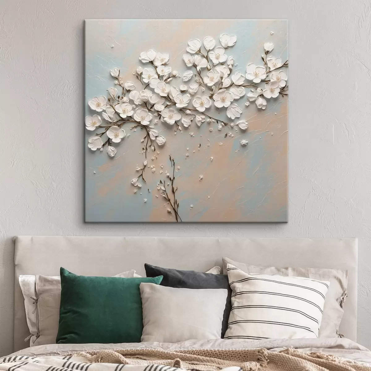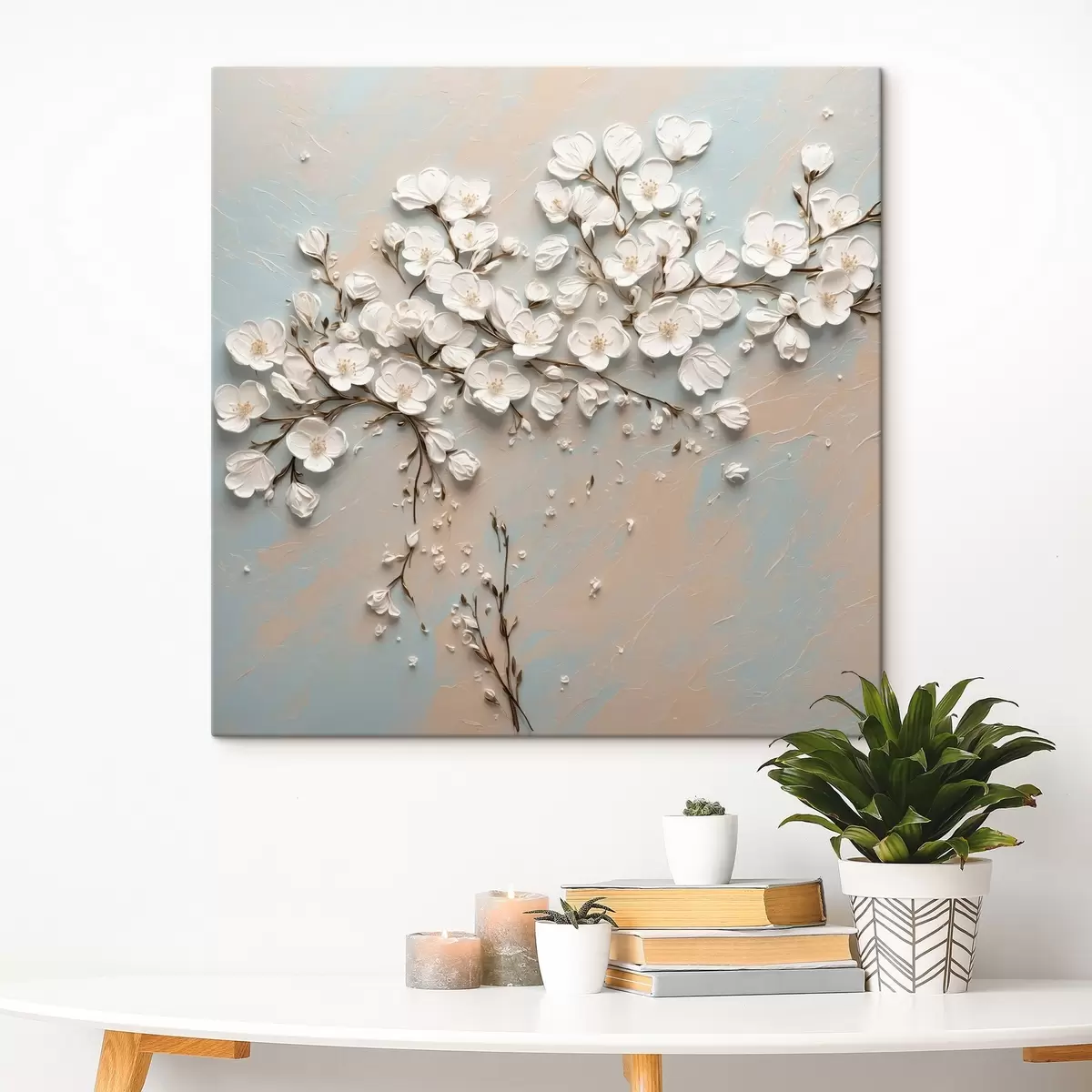 Tableau Petites fleurs blanches à l'acrylique s42921