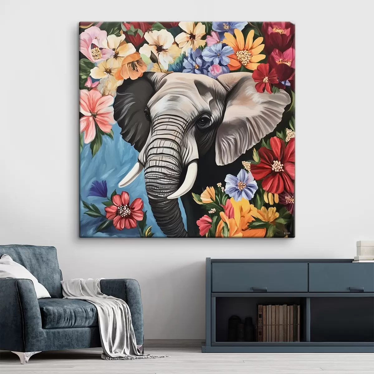 Tableau Éléphant dans des fleurs éclatantes s42990