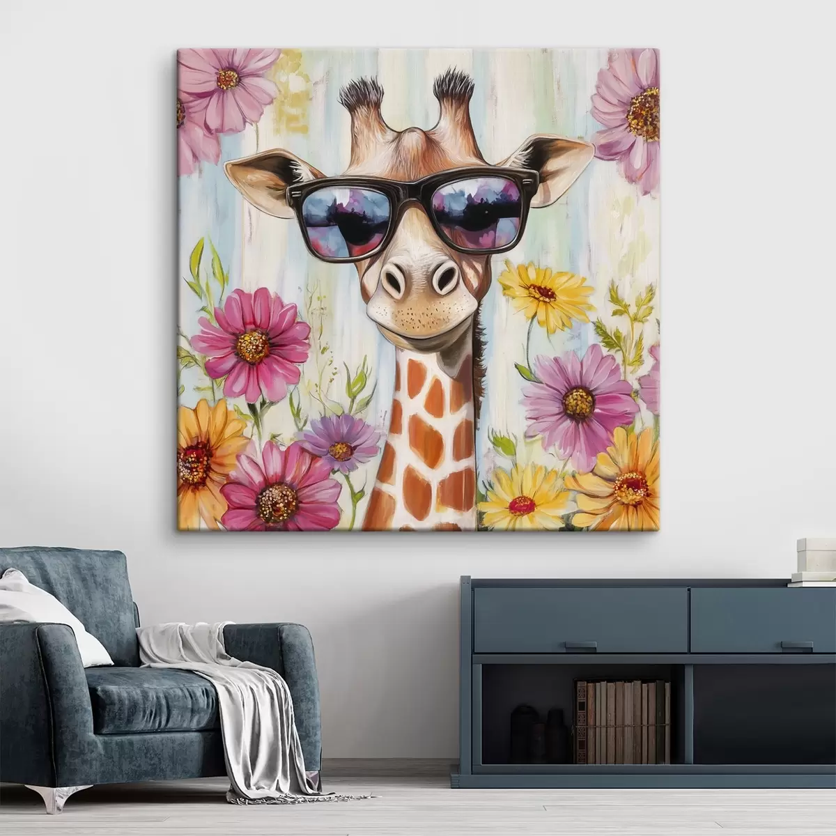 Tableau Girafe avec lunettes près de fleurs Nr s42991