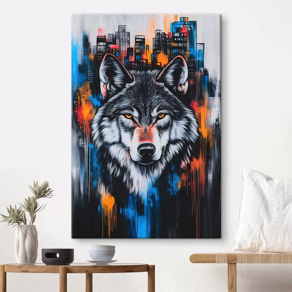 Tableau Un loup en arrière-plan de la ville Nr s42994
