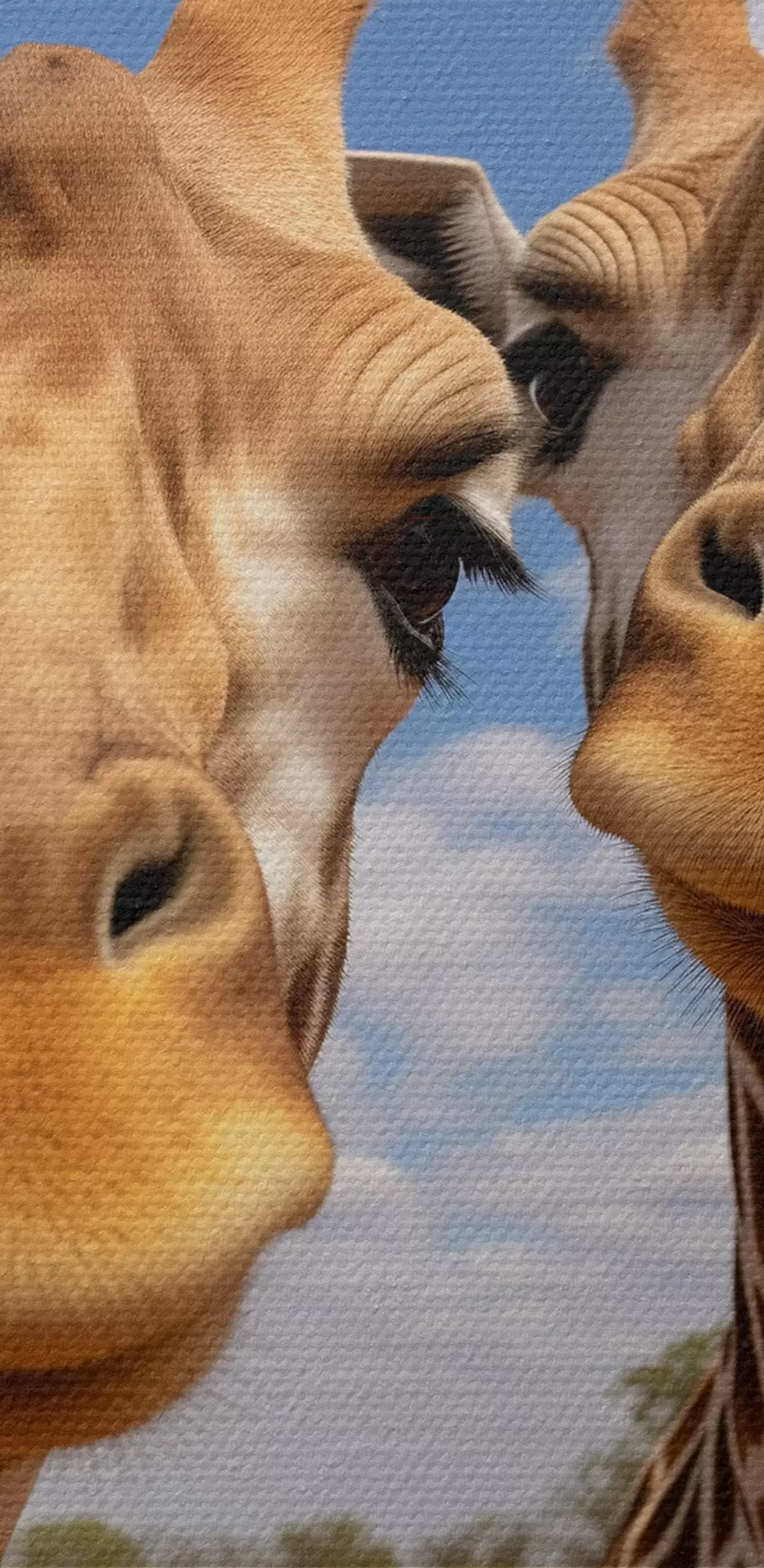Trois types de matériaux peuvent être commandés : Economic Canvas - matériau dense et durable pour l'impression numérique, identique à la toile de peintre, surface imperméable, reproduction réaliste des détails, matériau à grain moyen. Premium Canvas - la texture ressemble à celle d'une toile de peintre (petits fils entrelacés). Reproduction douce et détaillée de l'image sur une surface mate. Eco-Premium - tissu 100 % coton de haute qualité. Grâce aux fibres naturelles de coton, le matériau est durable et résistant à l'usure. Excellente reproduction des couleurs et des détails.