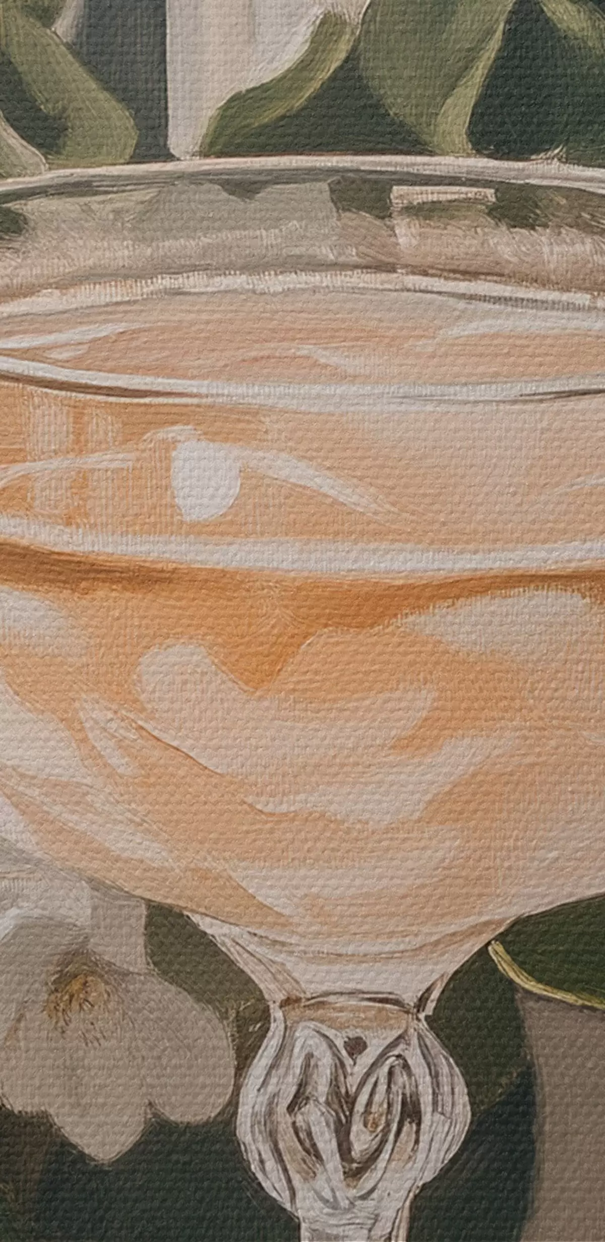 Tableau Coupe de champagne, vintage, style aquarelle, fleurs blanches s43051