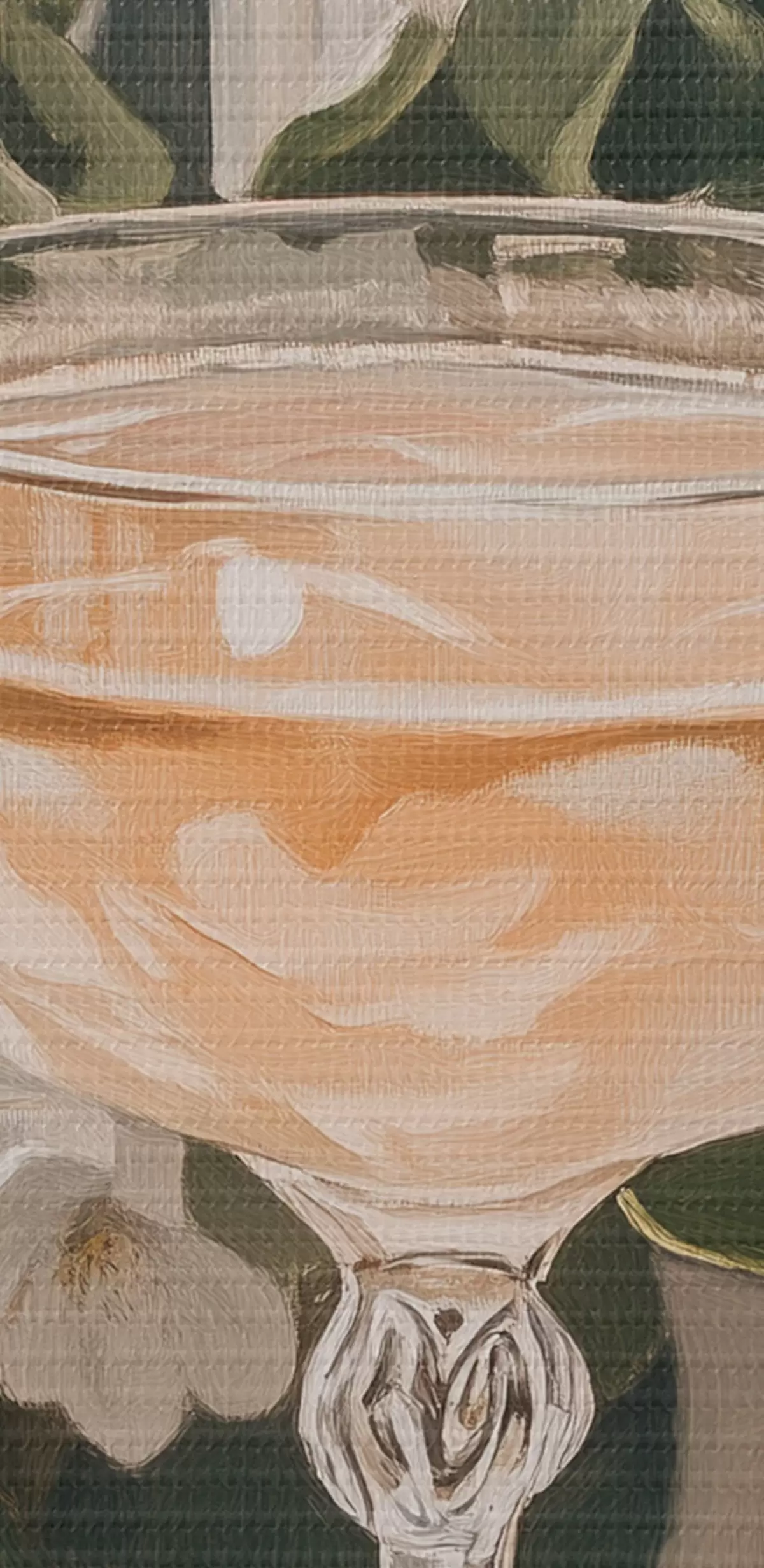 Tableau Coupe de champagne, vintage, style aquarelle, fleurs blanches Nr s43051