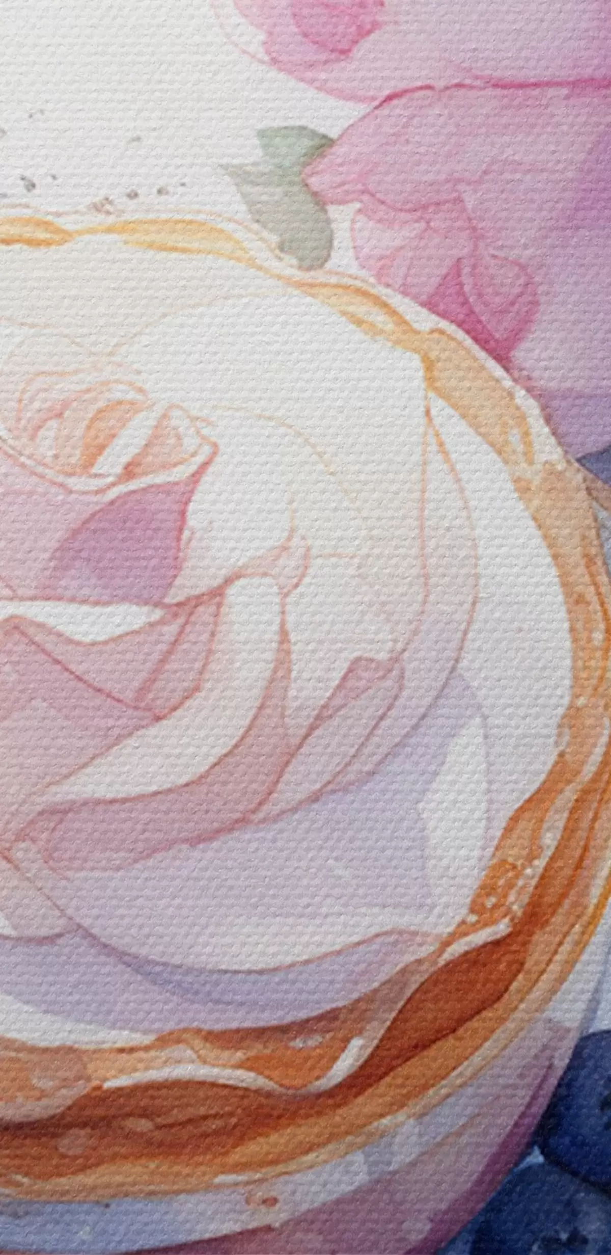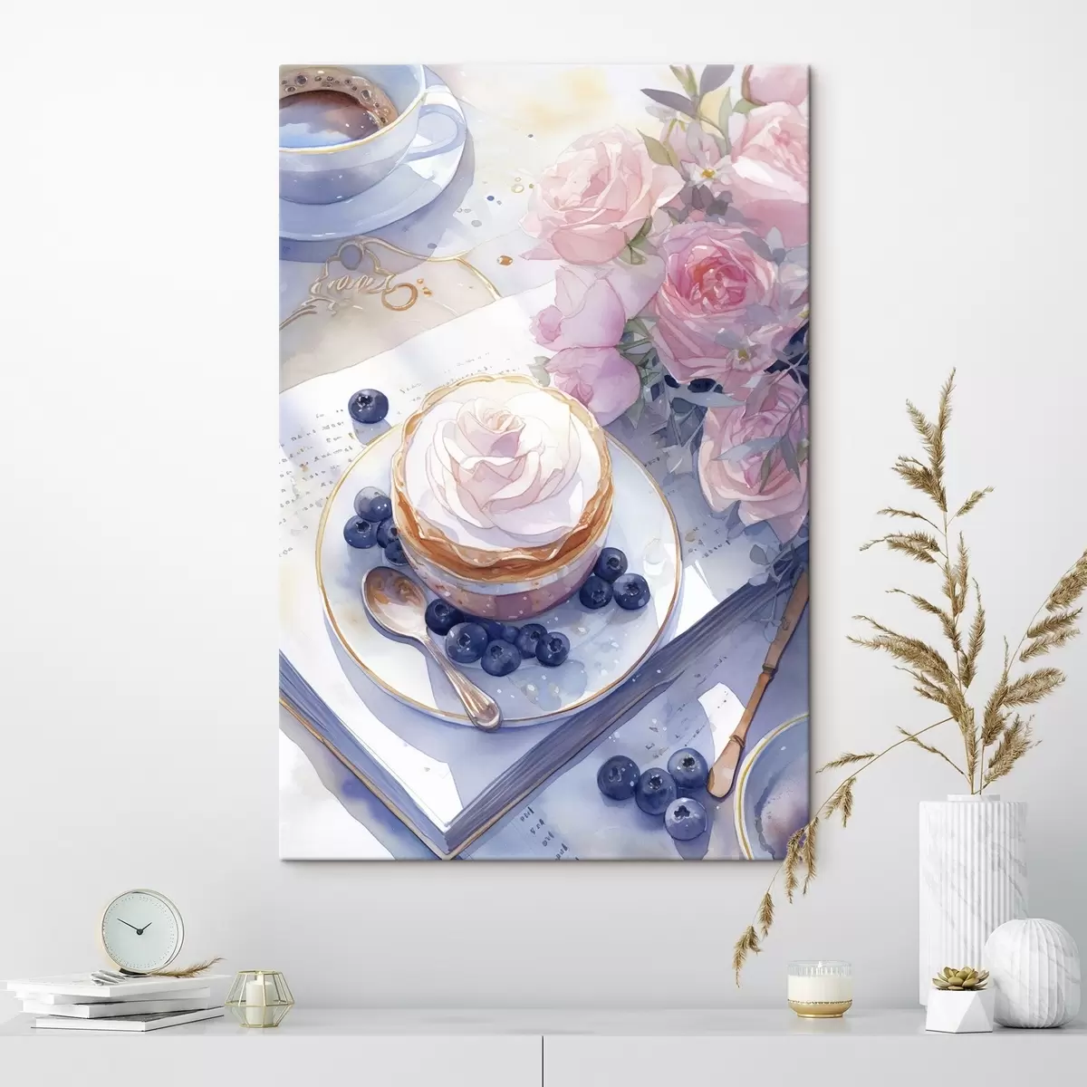 Tableau Cupcake aux myrtilles, style boho, aquarelle, roses roses, poétique Nr s43053