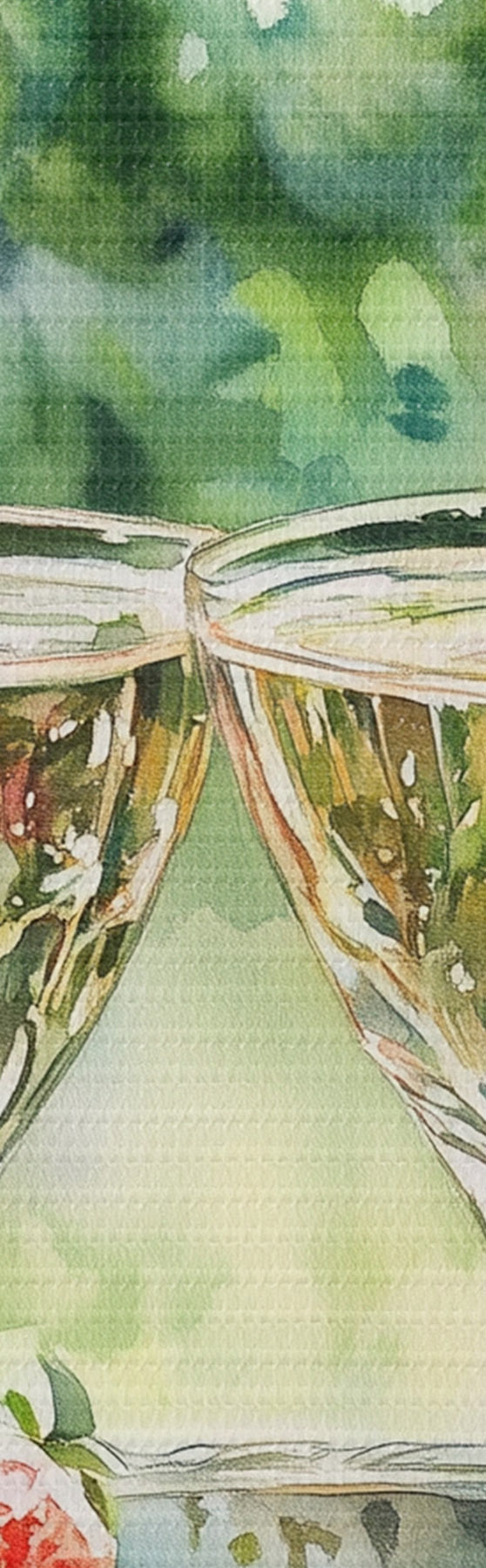 Tableau Pique-nique d'été avec champagne et fraises, dessin de style aquarelle Nr s43055
