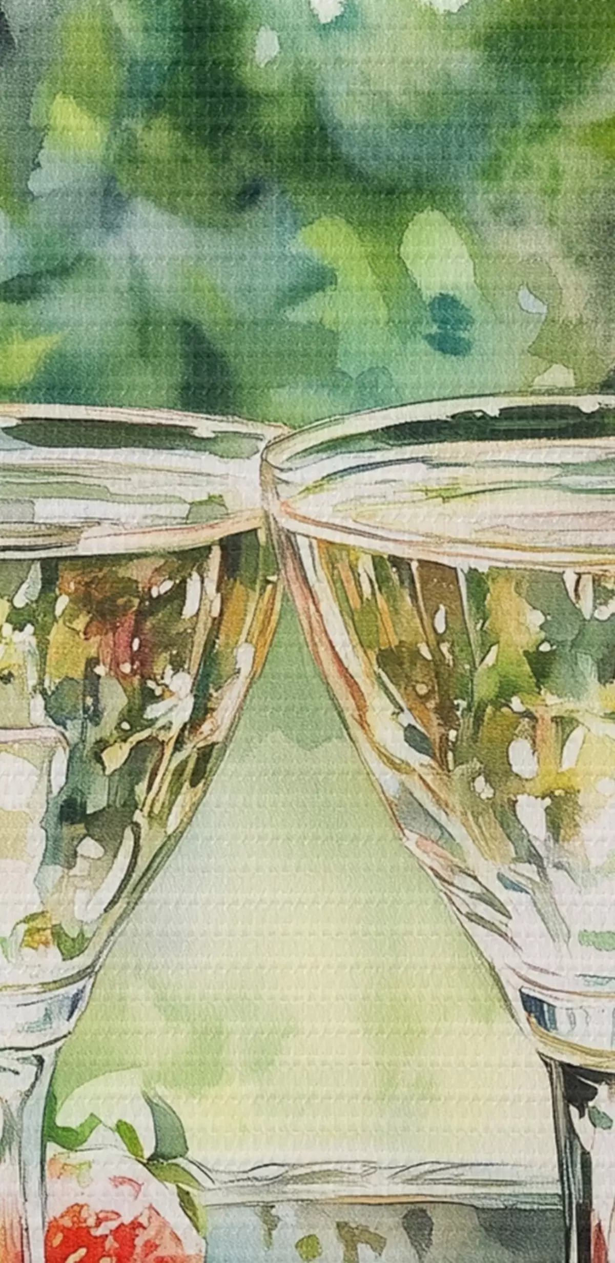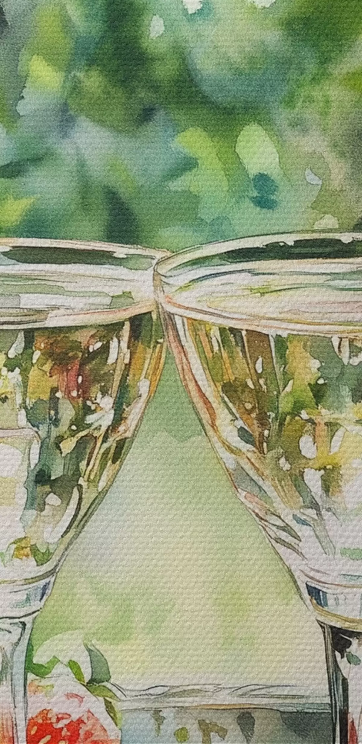 Tableau Pique-nique d'été avec champagne et fraises, dessin de style aquarelle Nr s43055