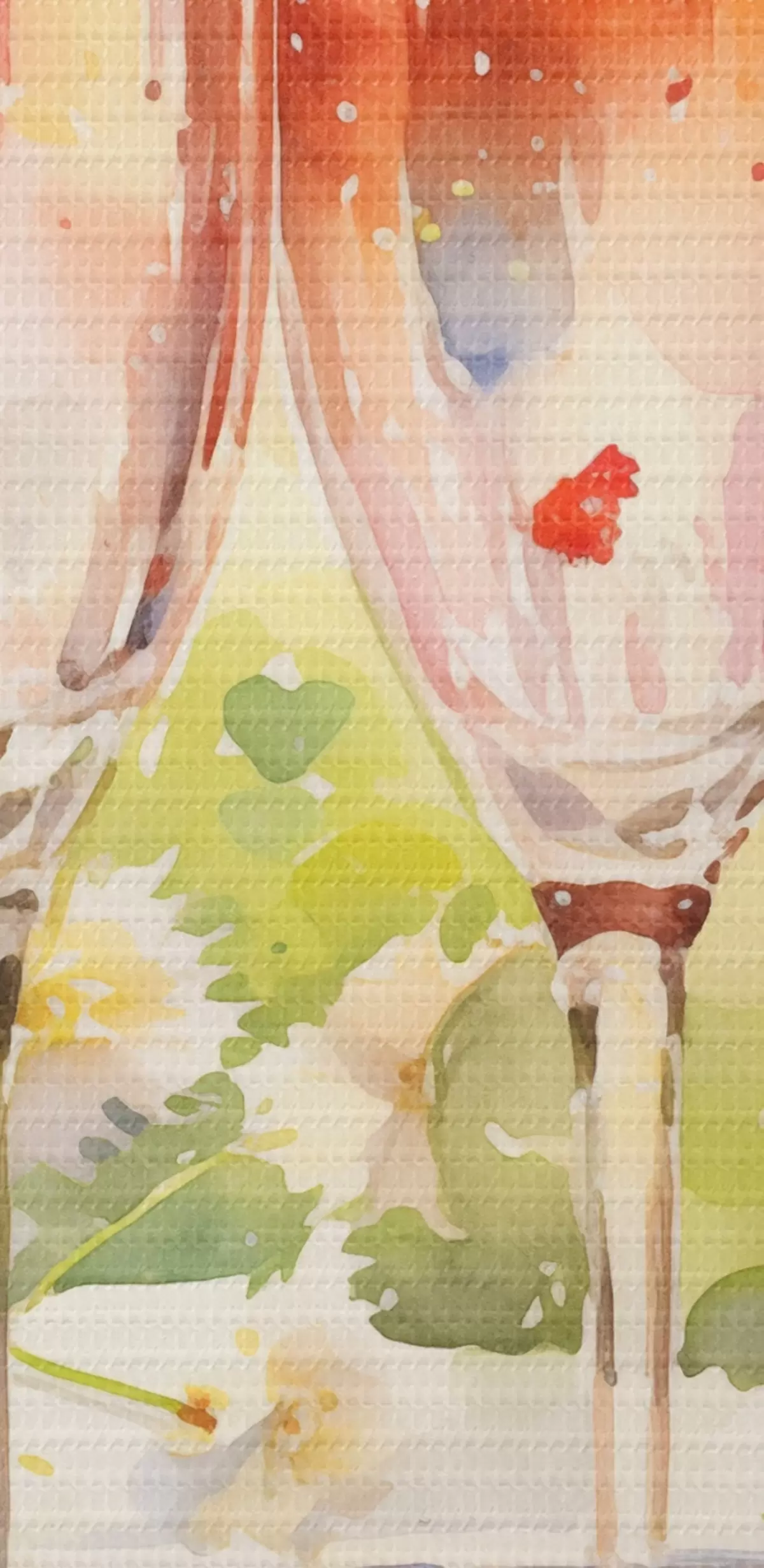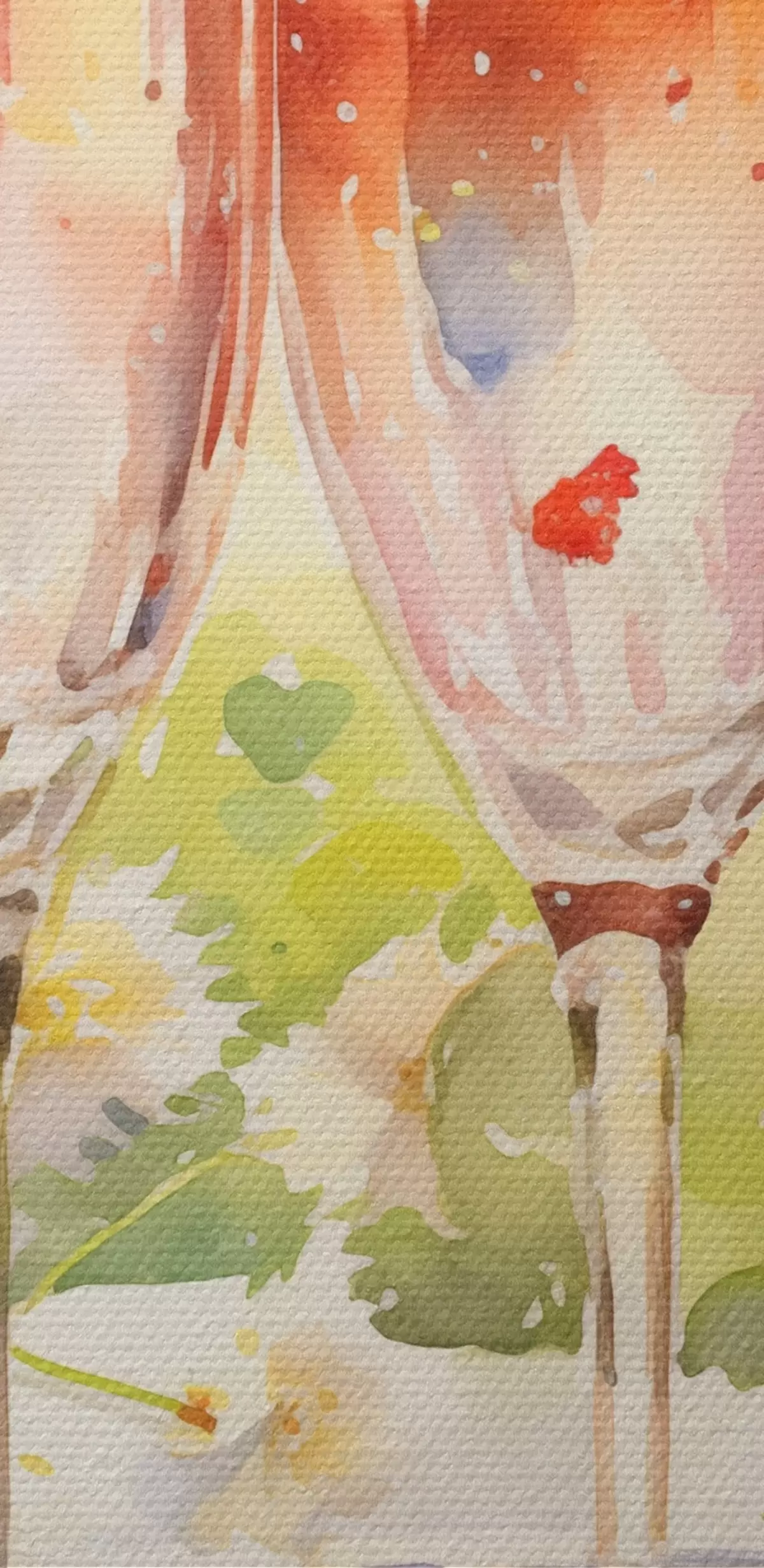 Tableau Dessin à l'aquarelle de coupes de champagne, de fleurs et de fraises Nr s43056
