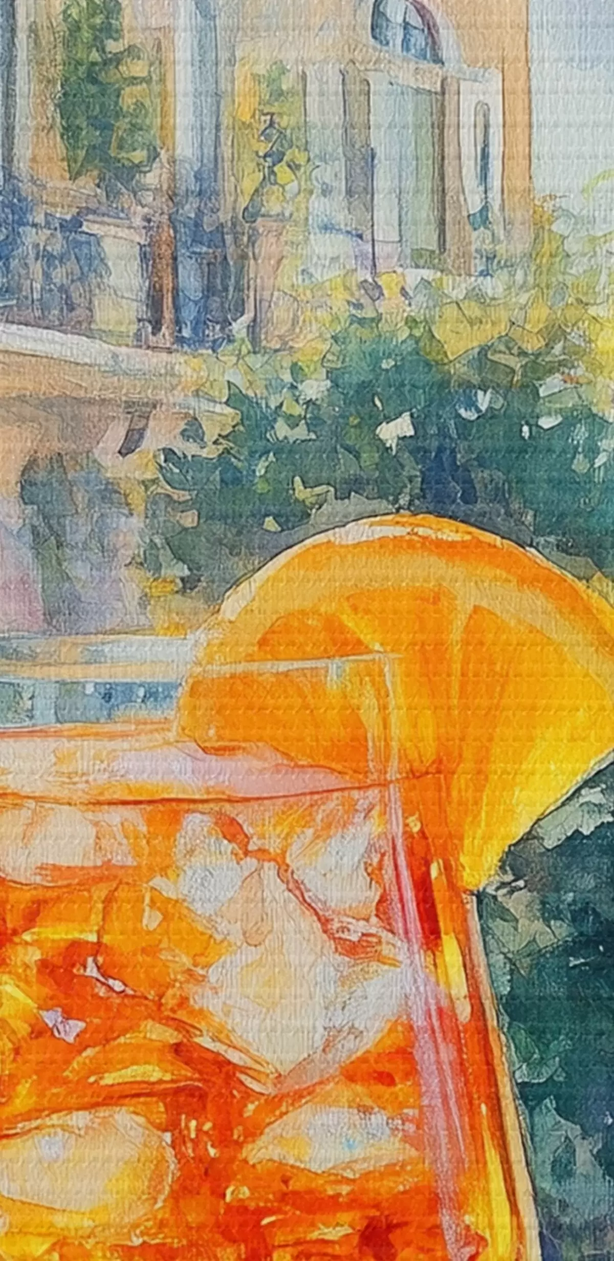 Tableau Cocktail avec oranges, style aquarelle, Italie, Aperol Spritz, architecture, jardin d'été Nr s43061