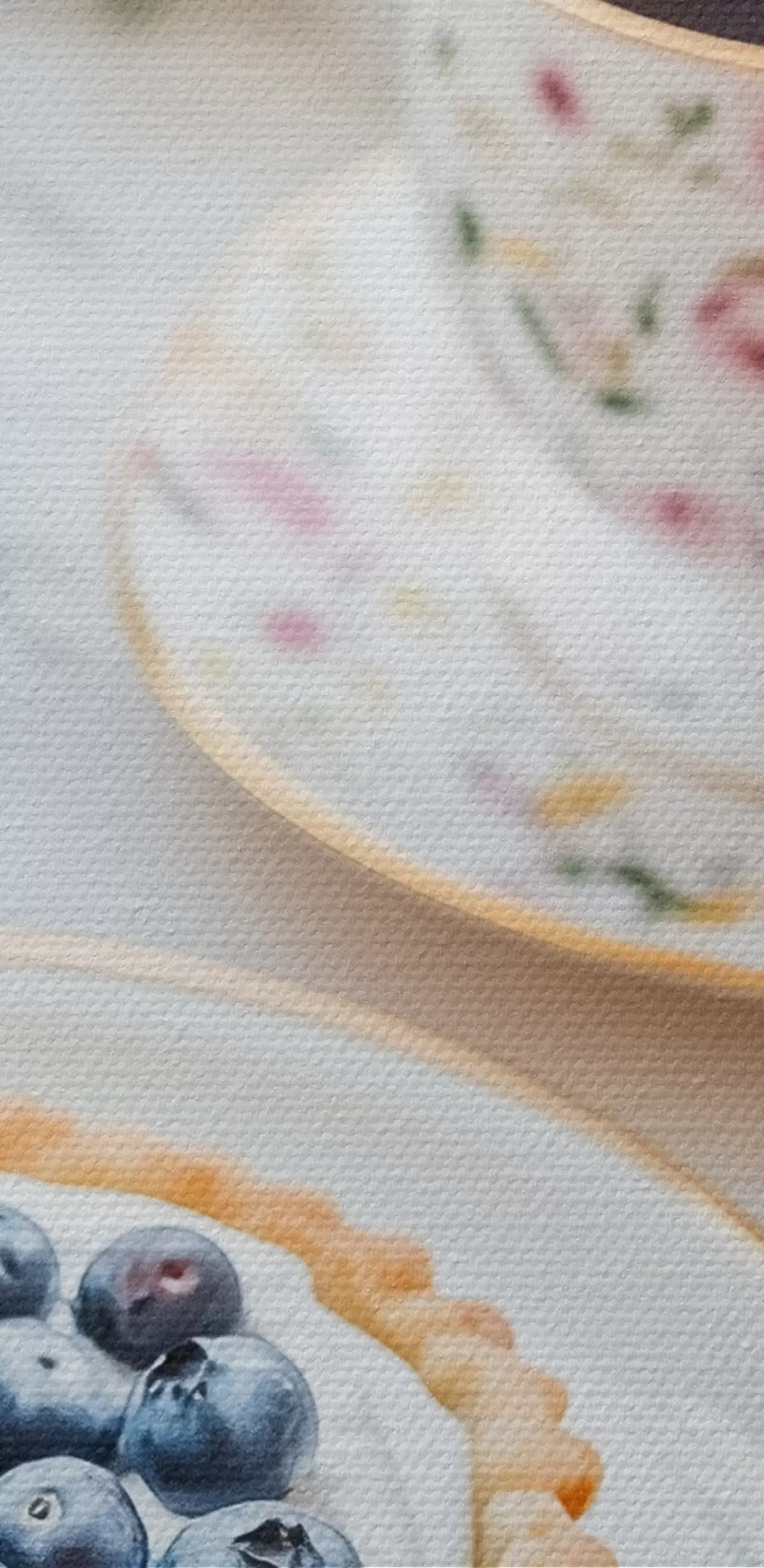 Tableau Cupcake aux myrtilles avec tasse de thé, style boho, roses roses s43066