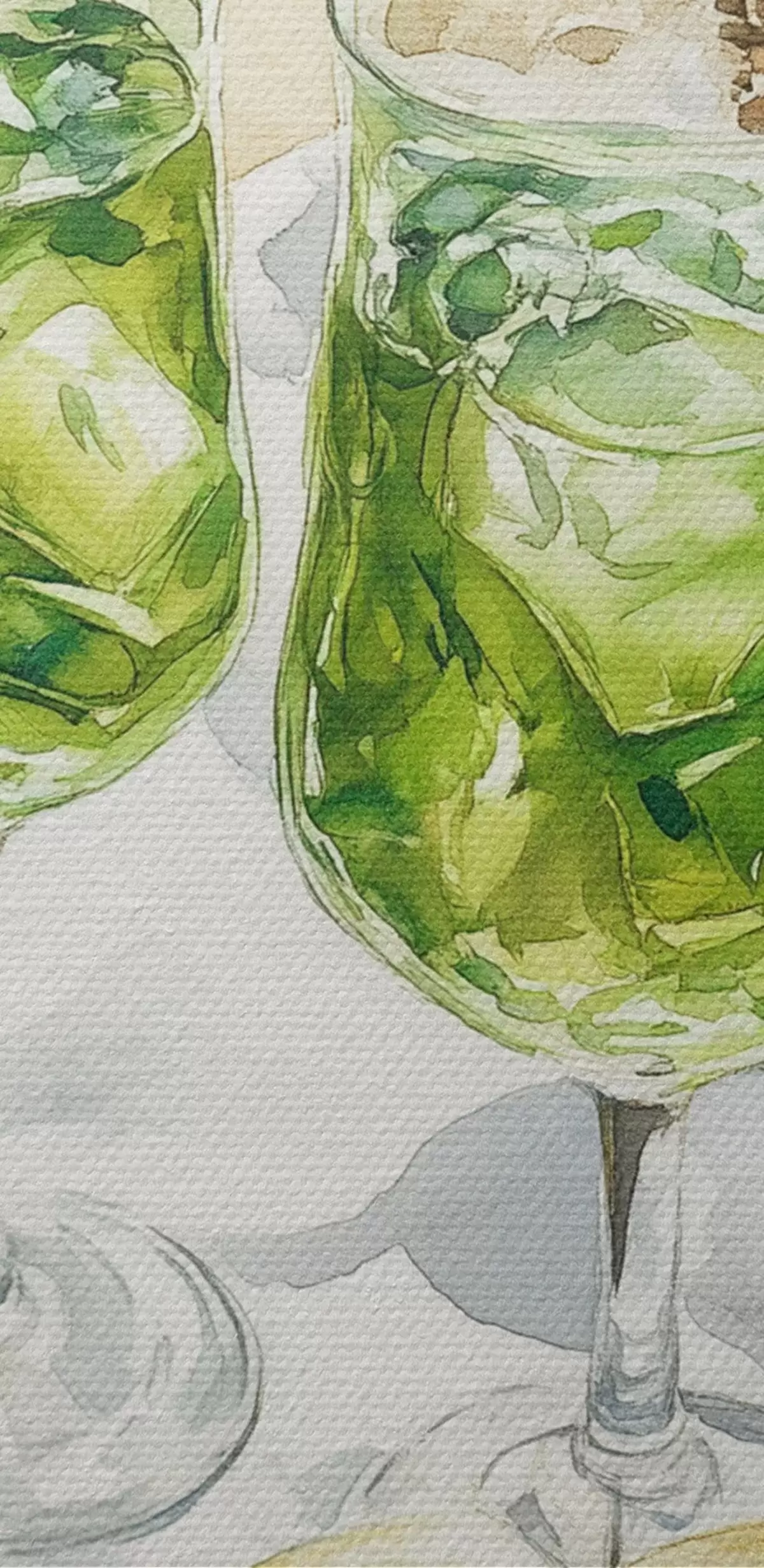 Tableau Cocktails sur la plage, dessin à l'aquarelle, océan, été s43067