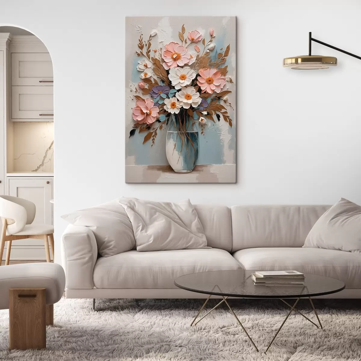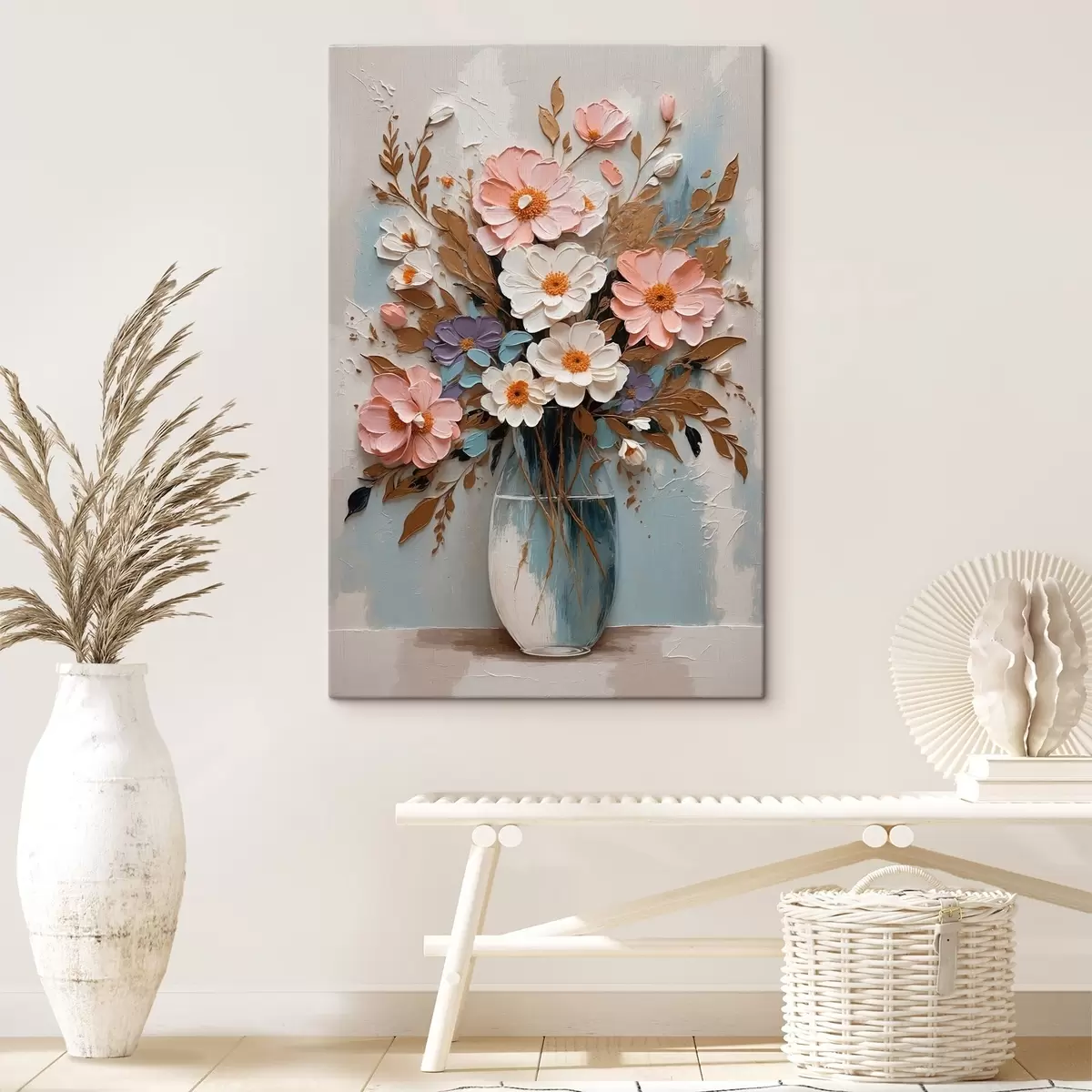 Tableau Fleurs roses et blanches dans un vase transparent s43089