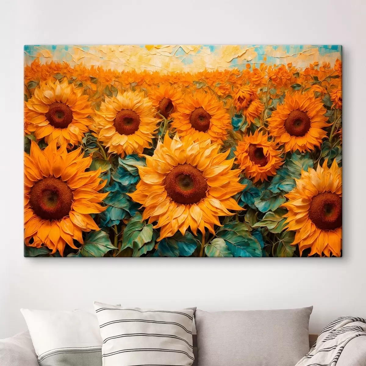 Tableau Champ de tournesols en peinture acrylique Nr s43104