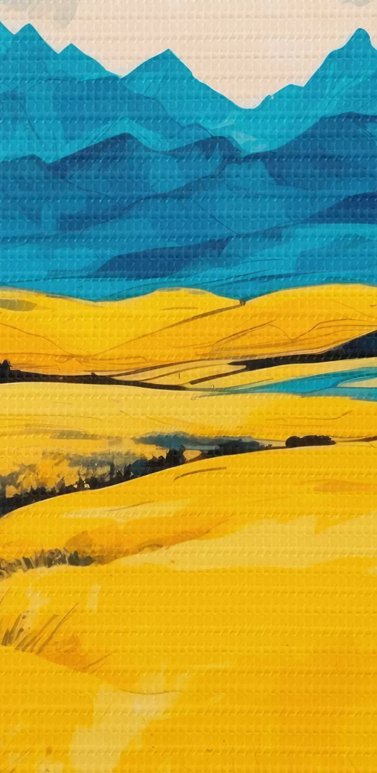 Tableau Champ jaune sur fond de montagnes dans le style de l'aquarelle s43117