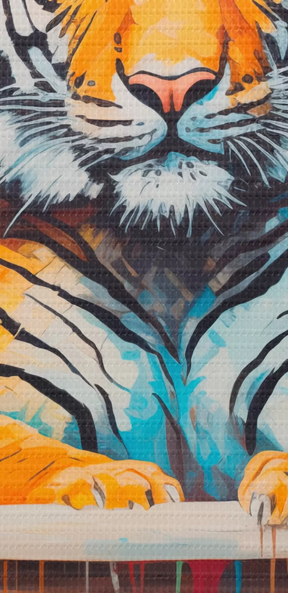 Tableau Un tigre abstrait dans une baignoire, entouré de fleurs vibrantes Nr s43134
