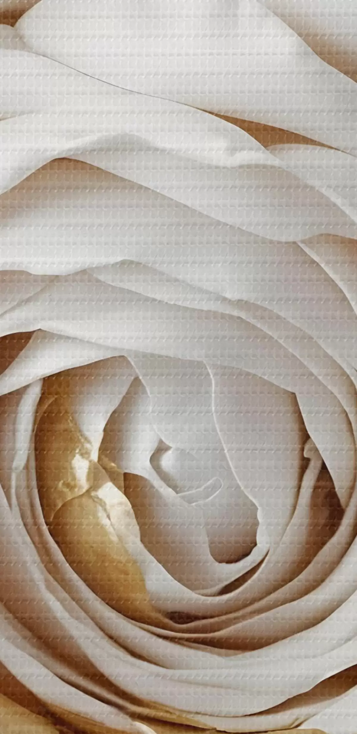 Tableau Une rose décorative minimaliste blanche avec des accents jaunes, les pétales sont superposés et enroulés s43160