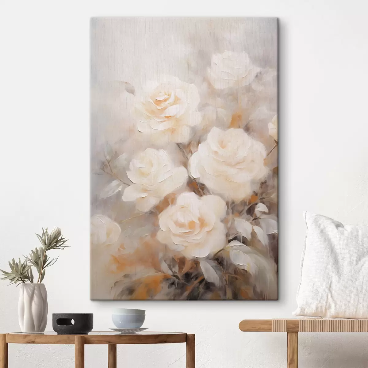 Tableau Roses blanches aux pétales souples, sur fond de couleurs sourdes et de formes floues, créant un effet de rêve Nr s43177