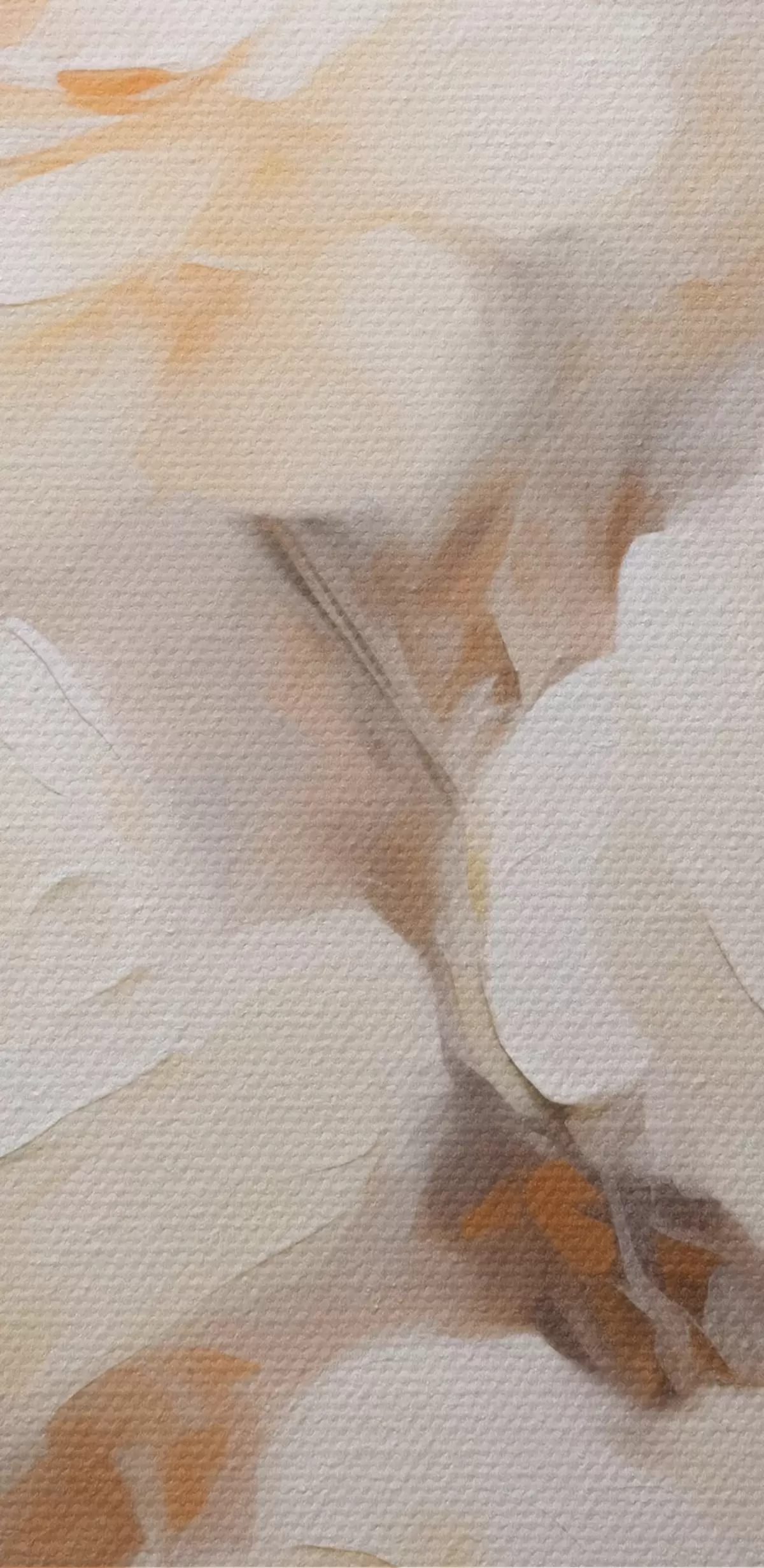 Tableau Roses blanches aux pétales souples, sur fond de couleurs sourdes et de formes floues, créant un effet de rêve s43177