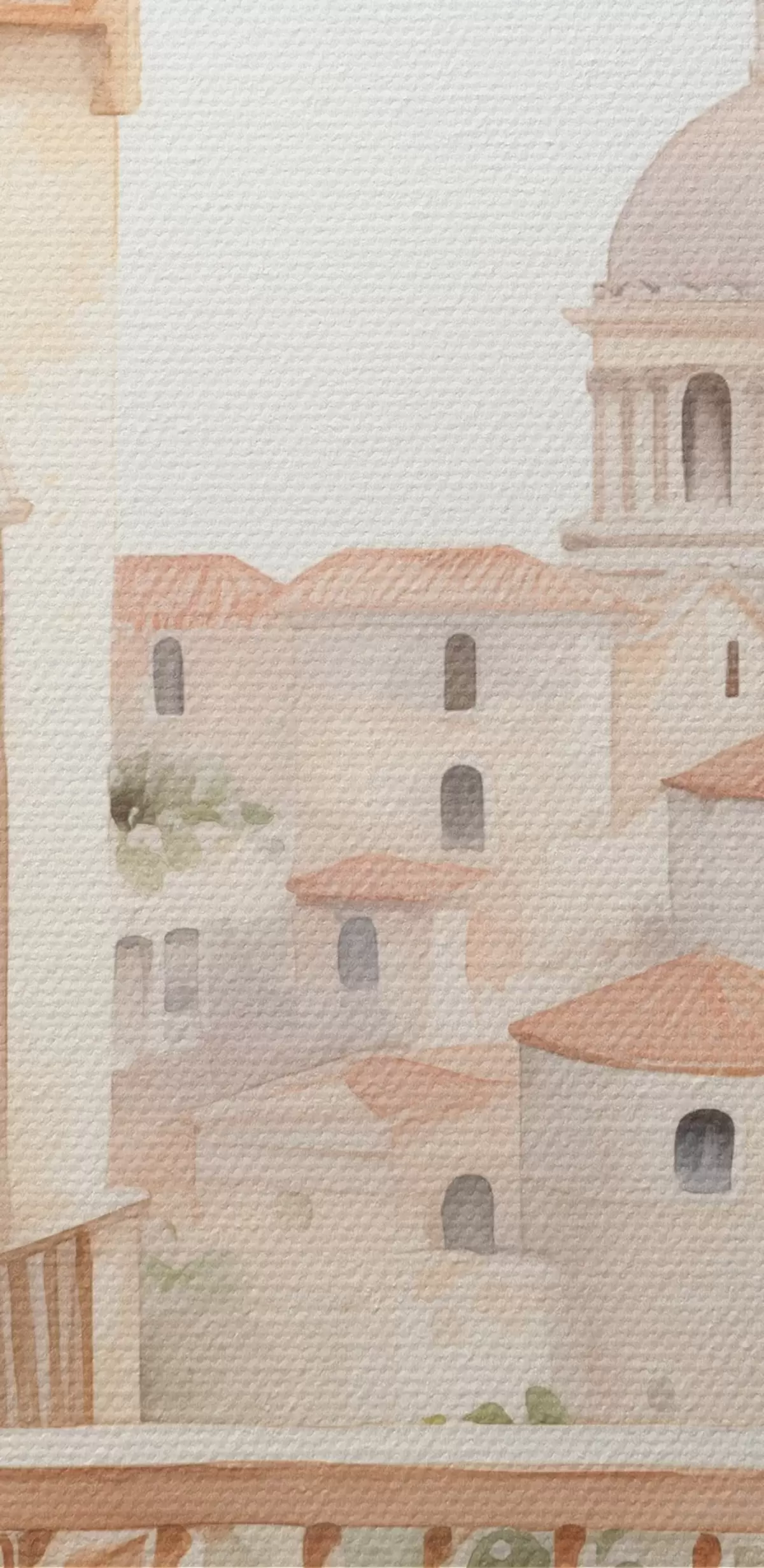 Tableau Balcon d'été esthétique, Espagne, architecture ancienne, blomming, style aquarelle s43180