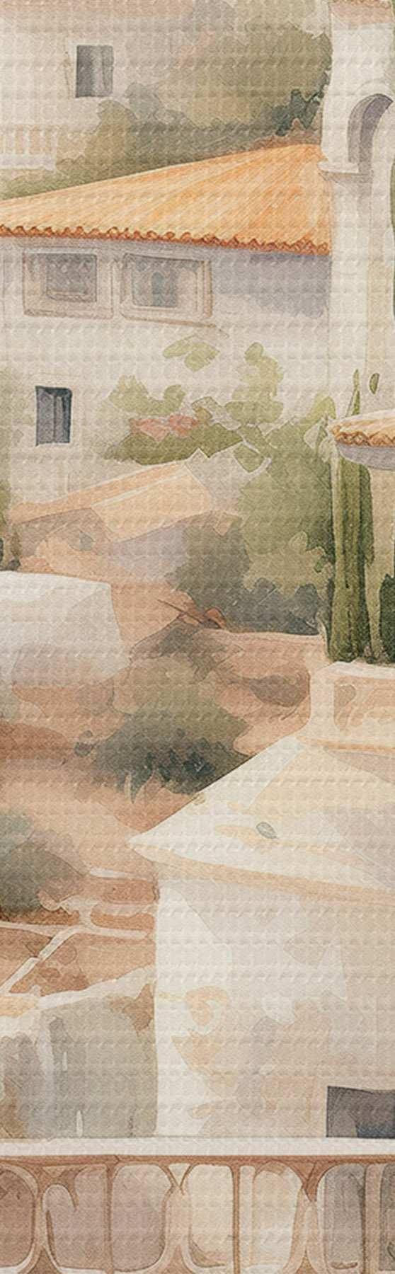 Tableau Espagne, paysage d'été, architecture méditerranéenne, style aquarelle Nr s43181
