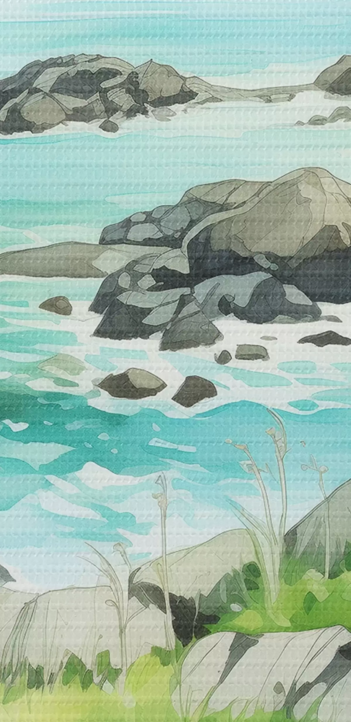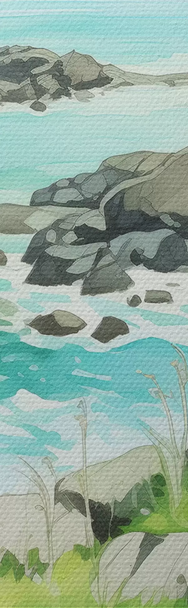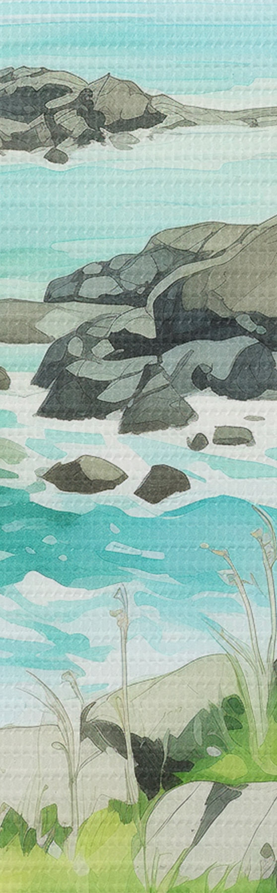 Tableau Norvège nature, fjords, paysage d'été, herbe verte, montagnes, style aquarelle s43188