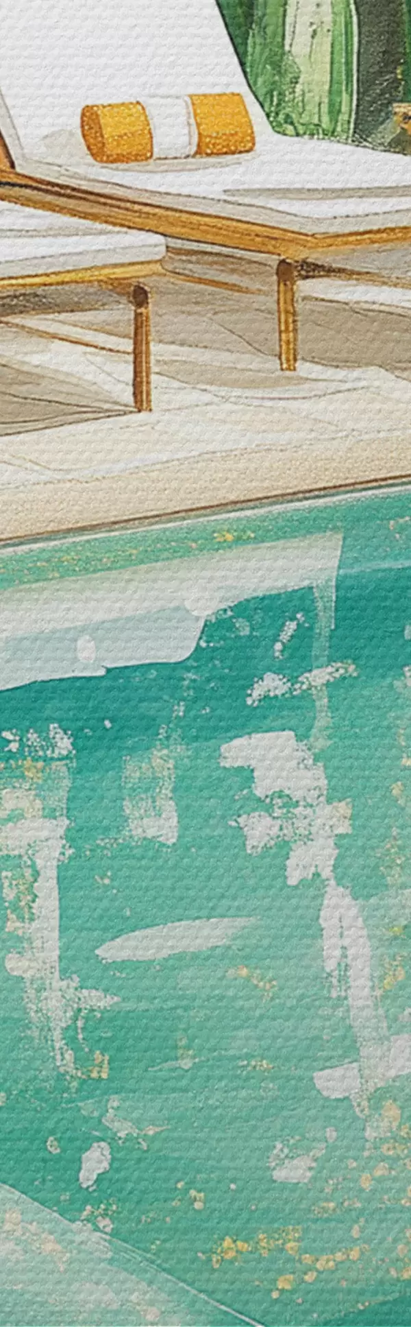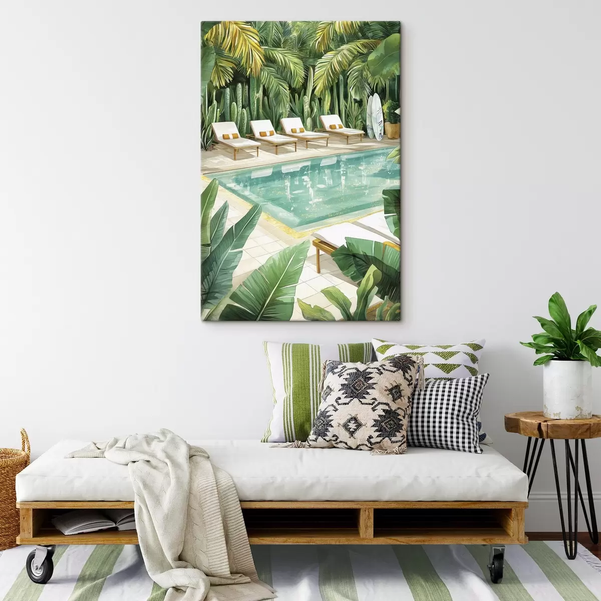 Tableau Nature tropicale, jardin, piscine d'été, surf, style aquarelle Nr s43190