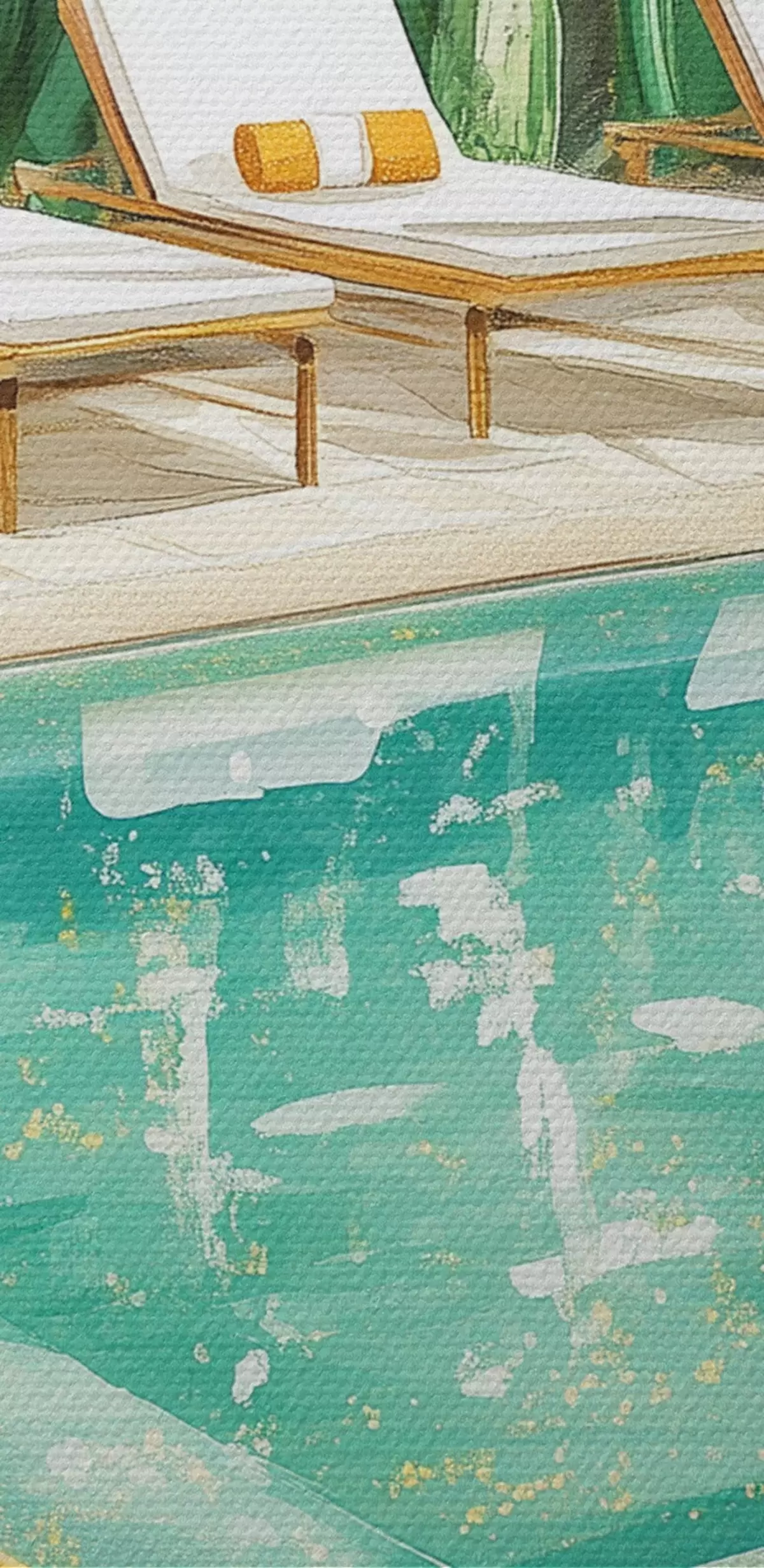 Tableau Nature tropicale, jardin, piscine d'été, surf, style aquarelle s43190
