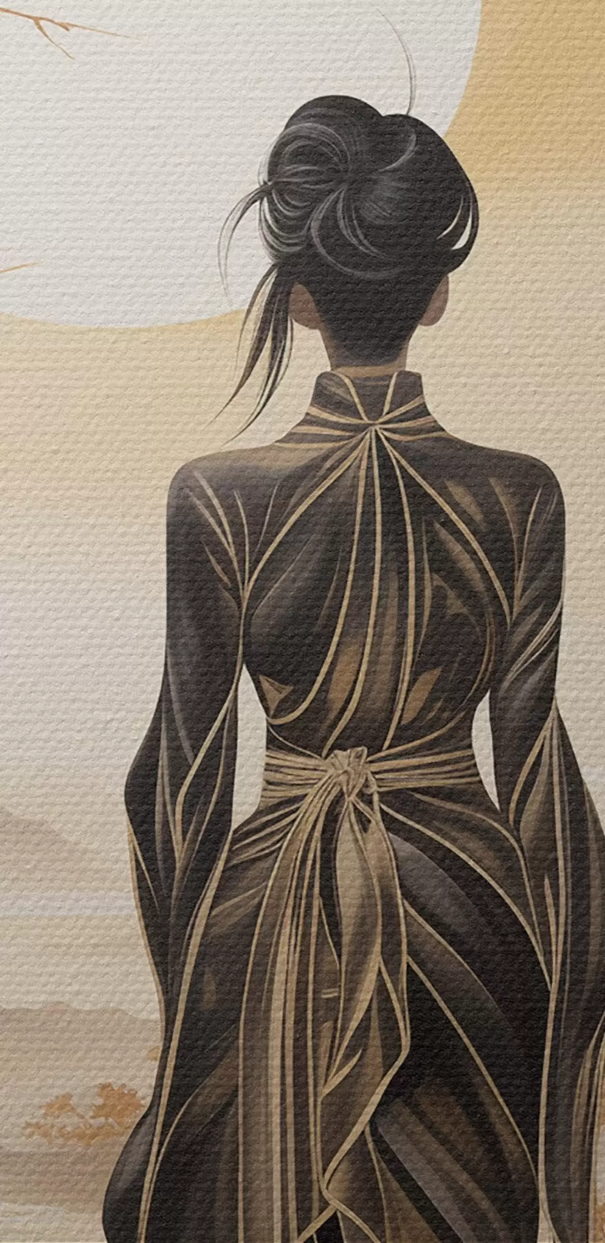 Tableau Personnes, Japon, fille au coucher du soleil sur fond de sakura et de montagnes Nr s43256