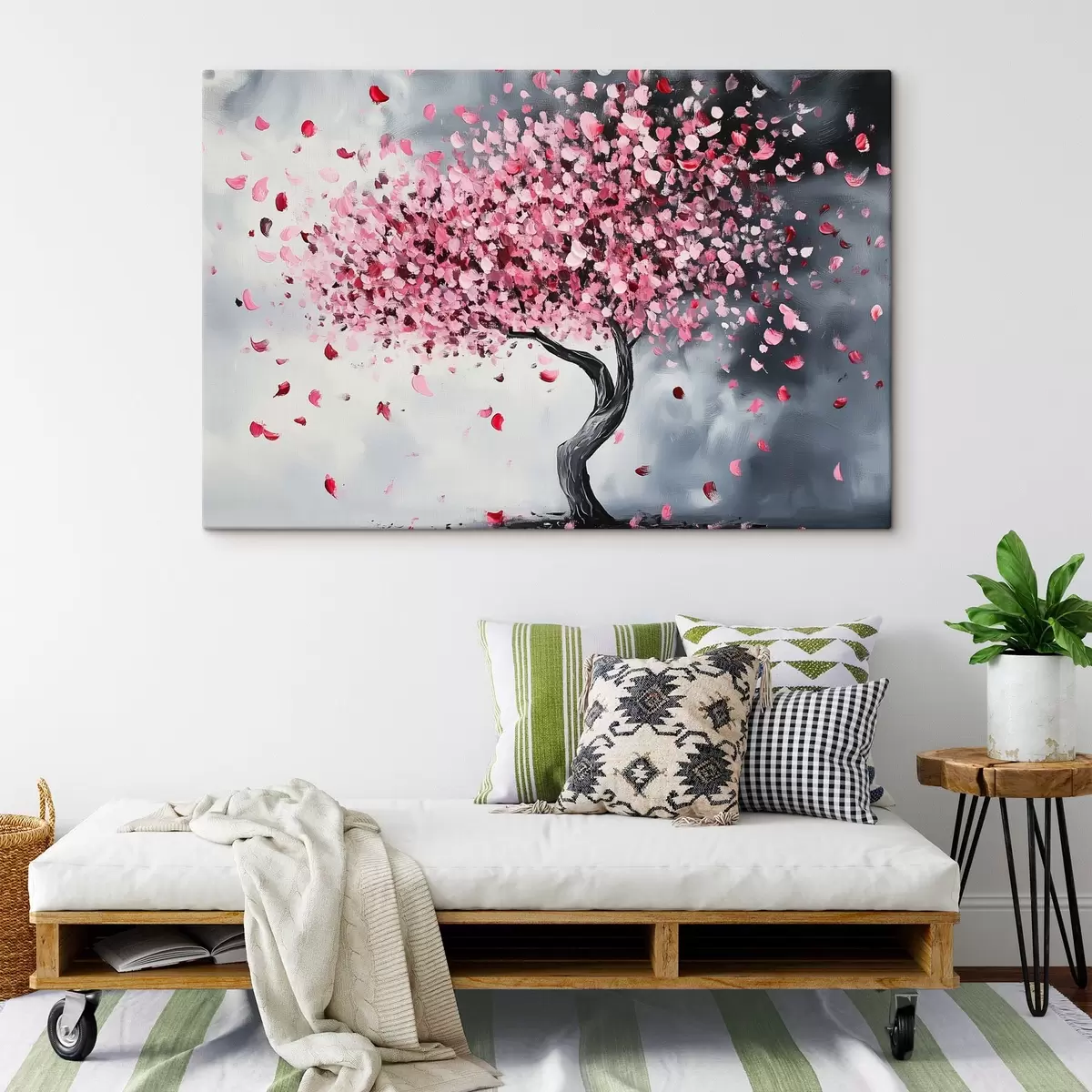 Tableau Arbre à fleurs rose sur fond gris Nr s43299
