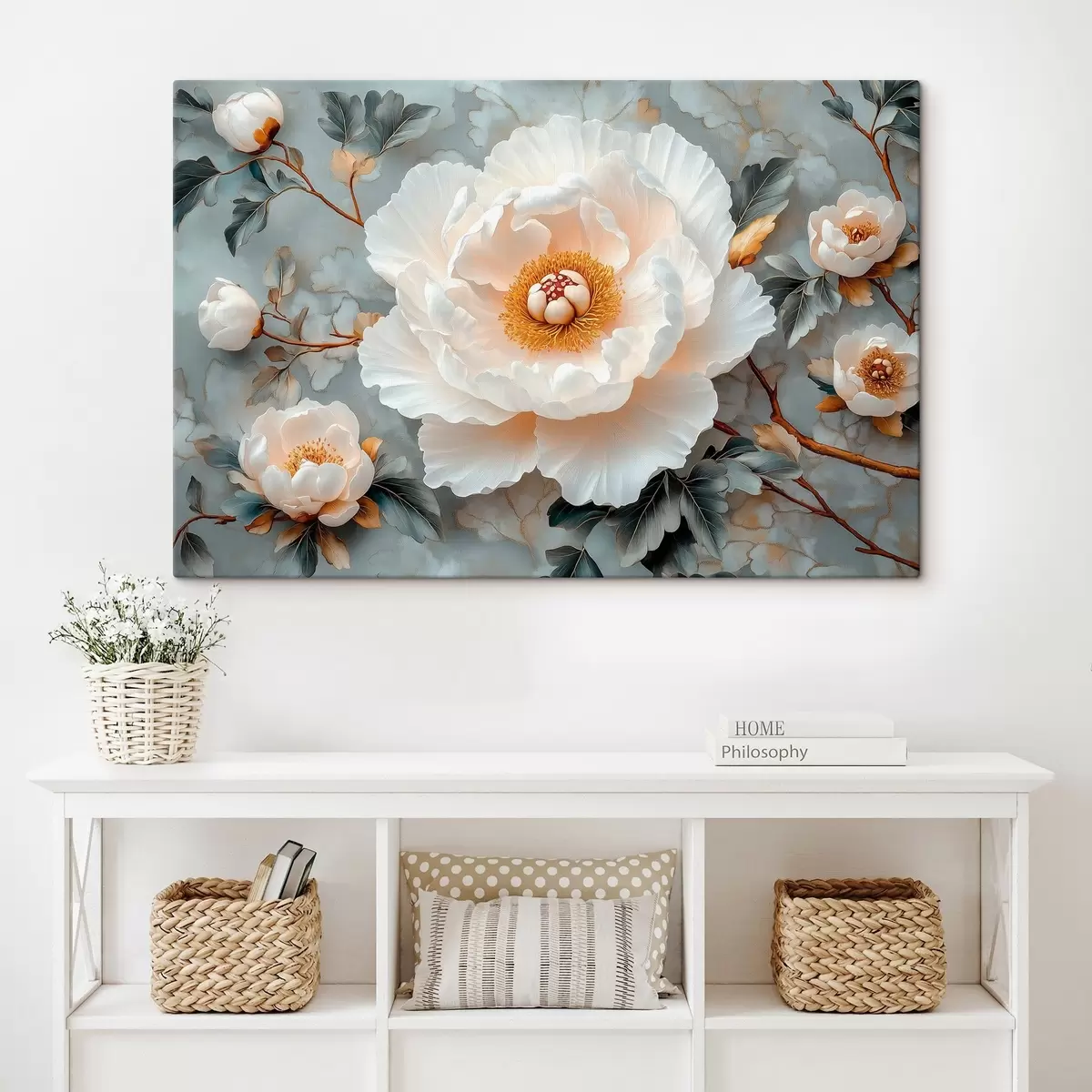 Tableau Magnifique pivoine sur fond de feuilles et de petites pivoines s43315