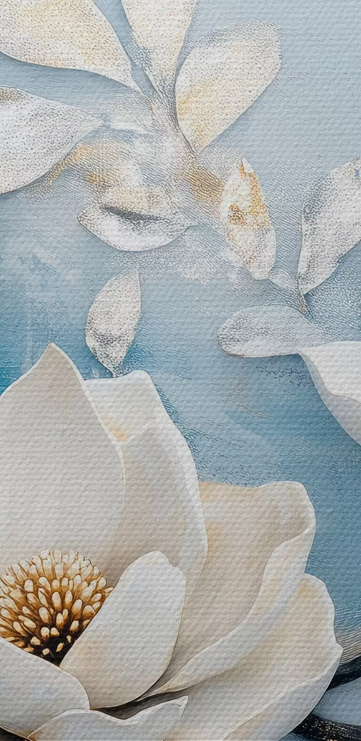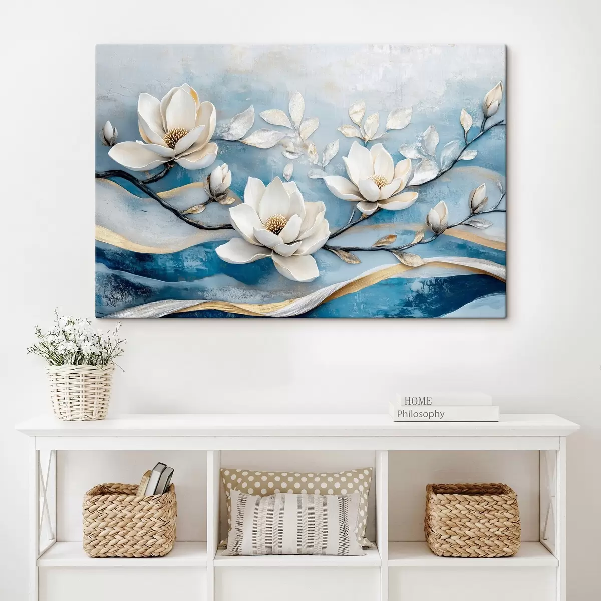 Tableau Branche de magnolia sur fond abstrait bleu-jaune Nr s43323