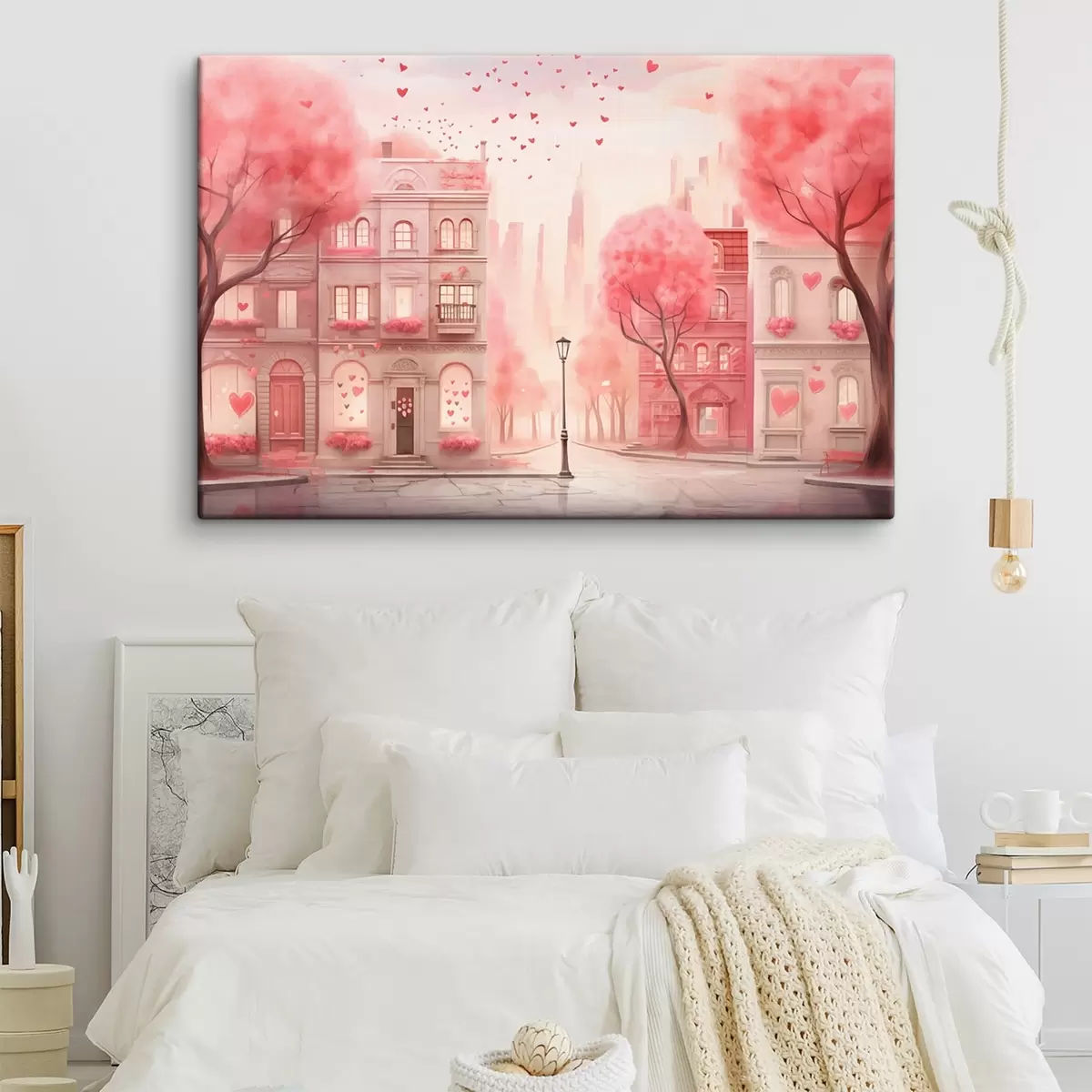 Tableau Rue romantique rose avec des cœurs Nr s43324