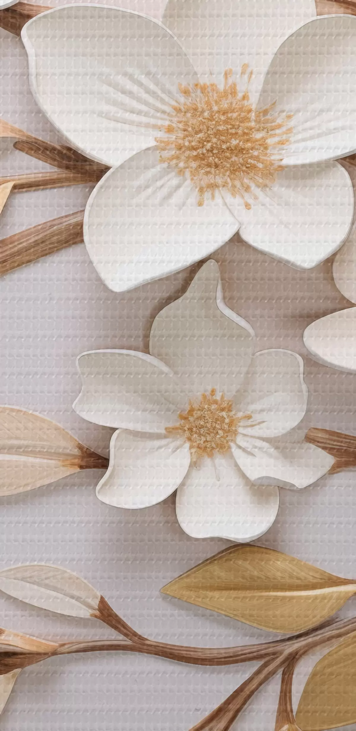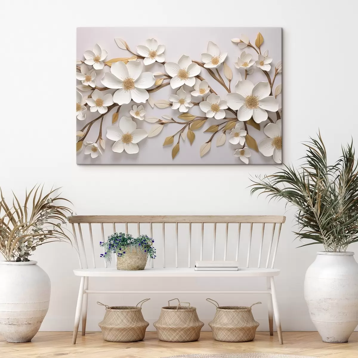 Tableau Fleurs blanches dans le style d'une fresque en relief avec des accents jaunes Nr s43331